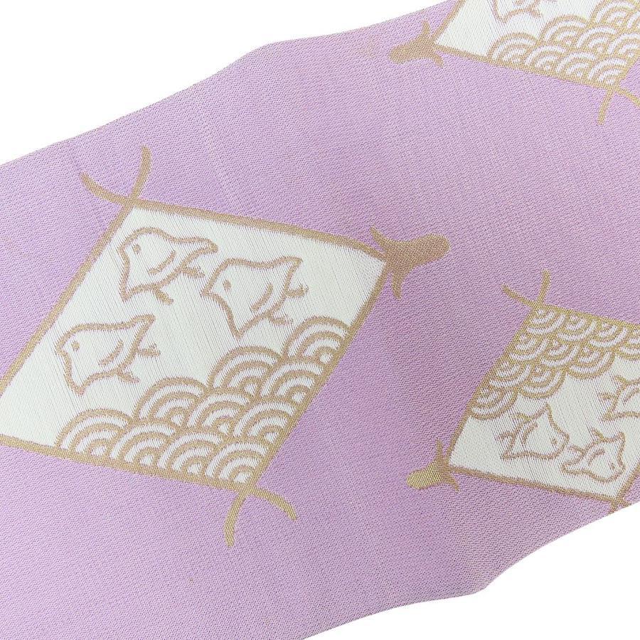 | 品名 | 【中古】 半幅帯 化学繊維 金糸 藤色 ゴールド ホワイト 両面 レディース 女性 |