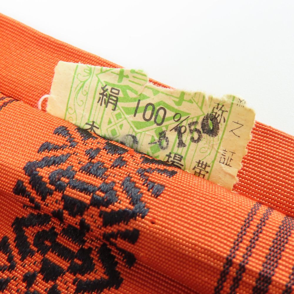 [Pre-owned] Half-width Obi (Small Bag Obi), Odori Obi (Dancing Obi), Pure Silk (Gold and Silver Threads Excluded), Orange, Black, Brown, Kenjo Pattern, Stylish, Authentic Chikuzen, Kimono, Women's