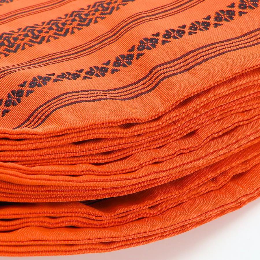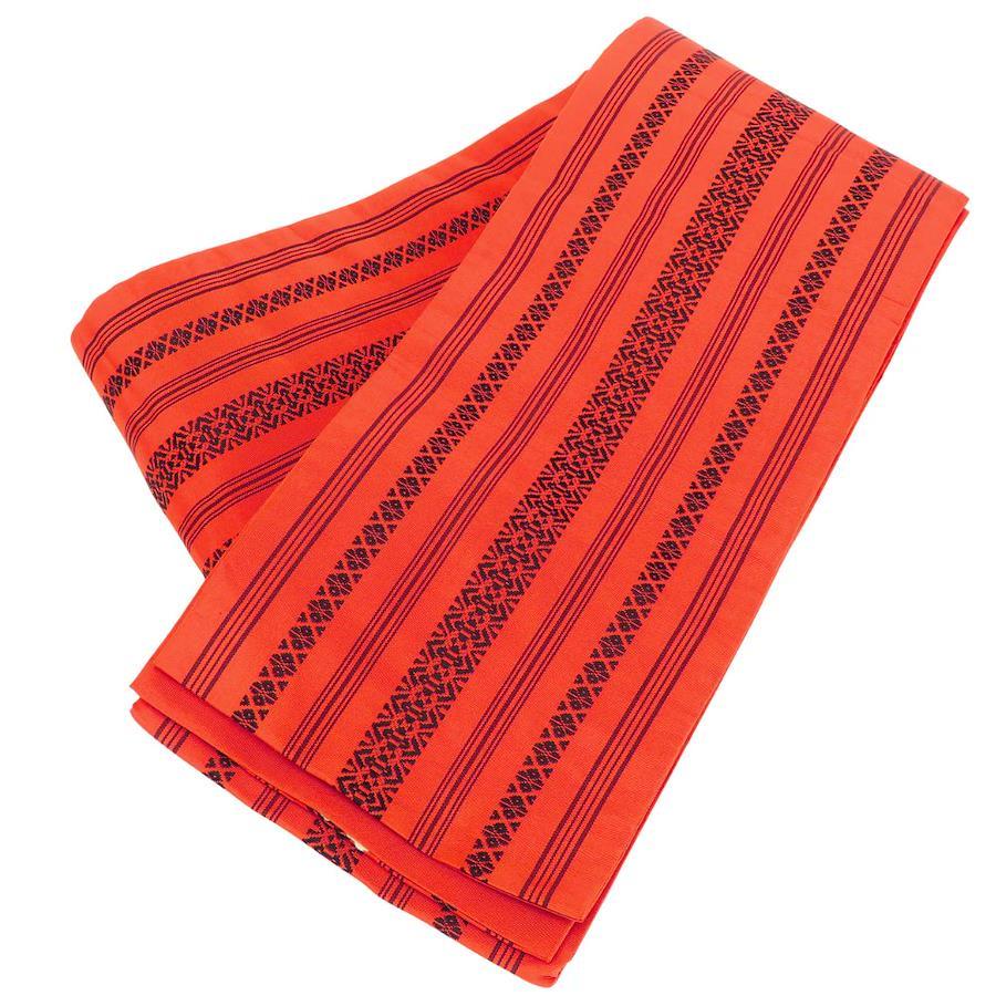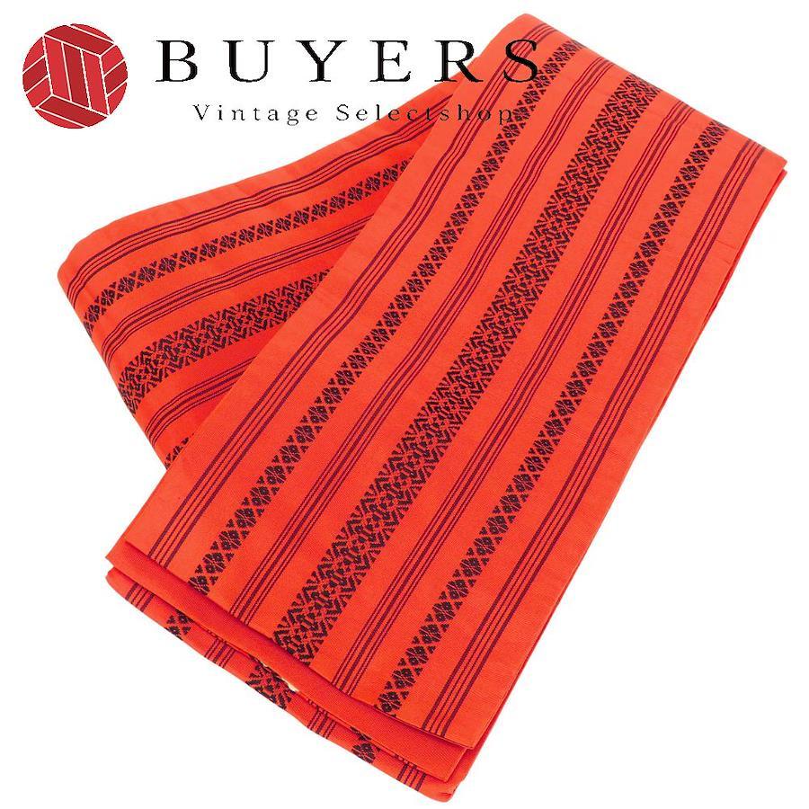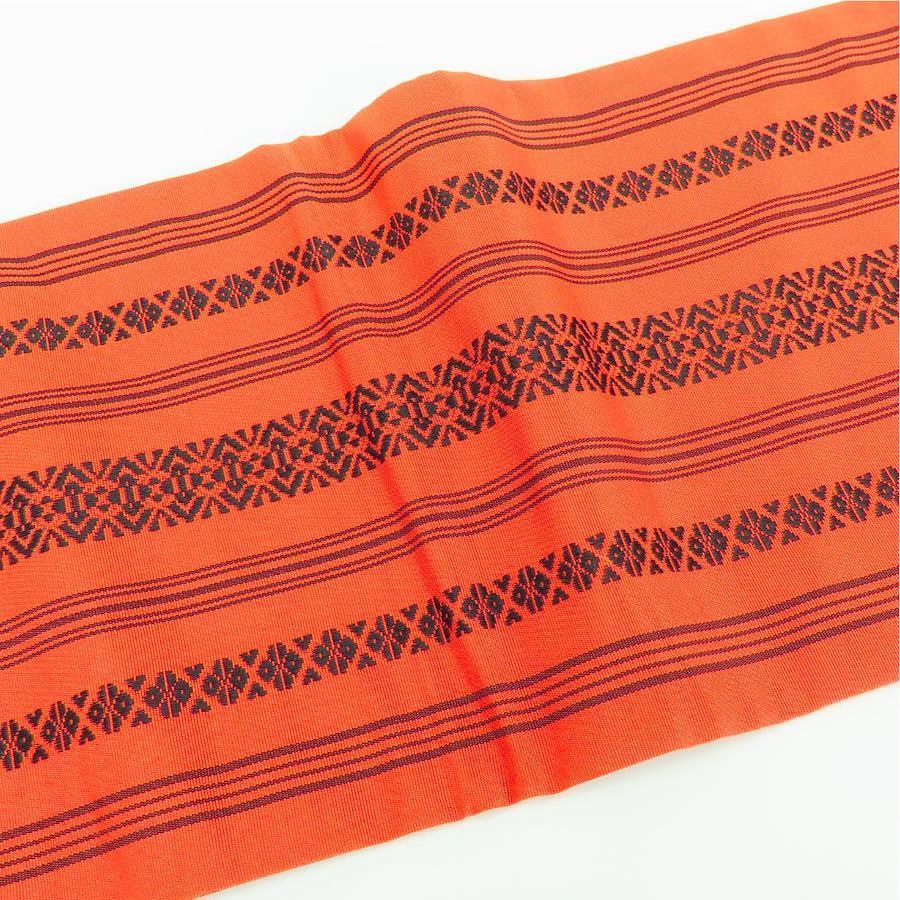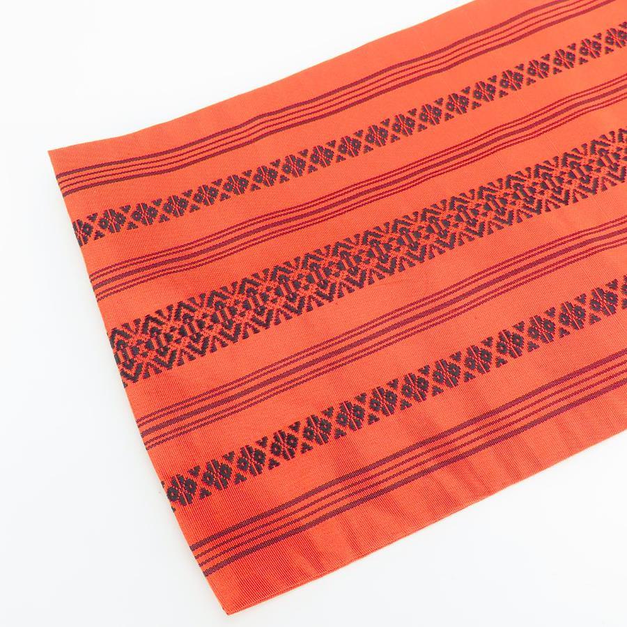品名【中古】 半幅帯 小袋帯 踊り帯 正絹(金銀糸除く) オレンジ系 ブラック ブラウン 献上柄 お洒落 本場筑前 レディース 女性