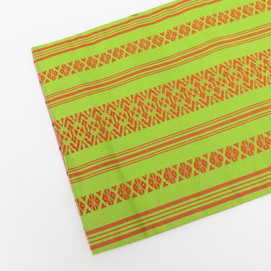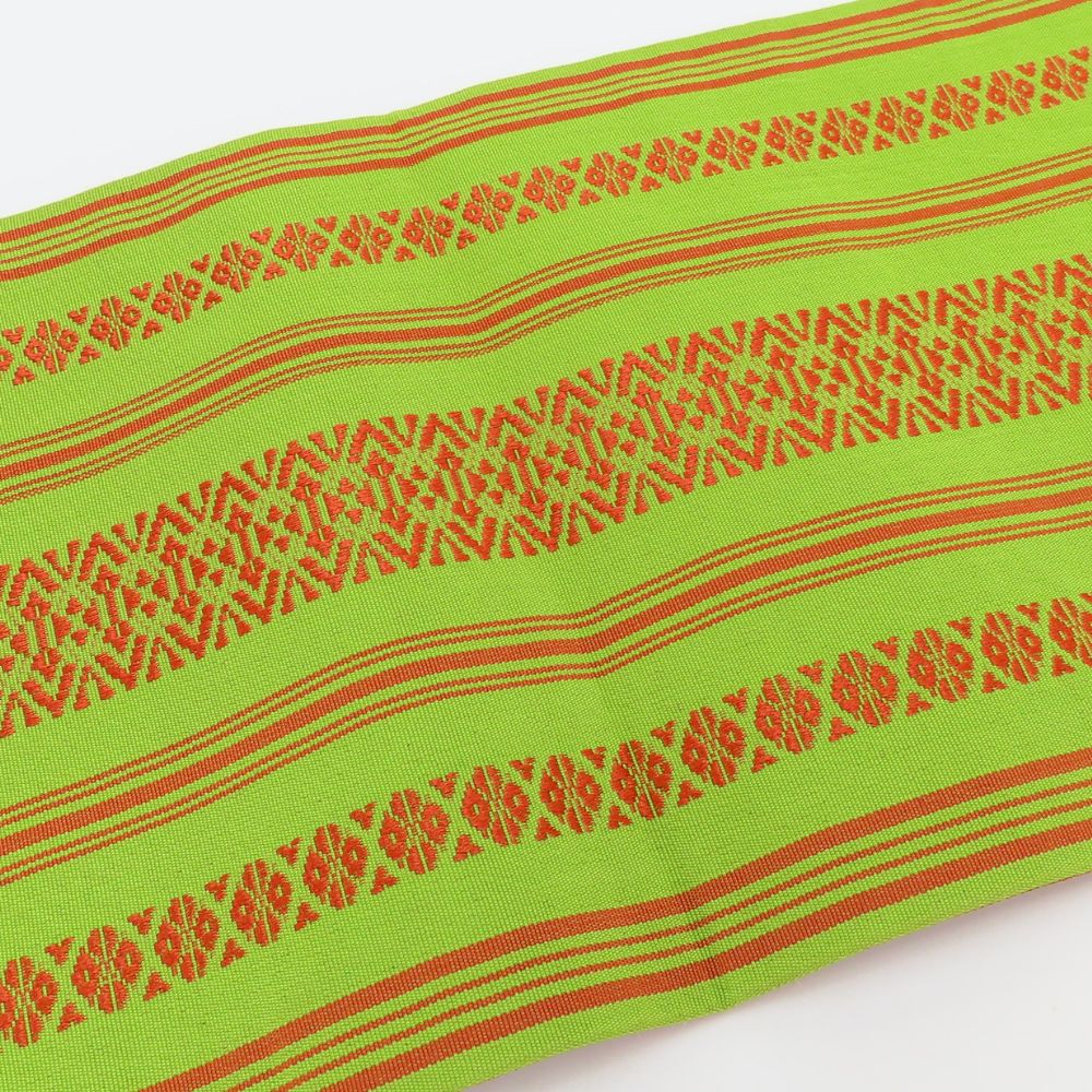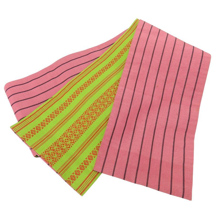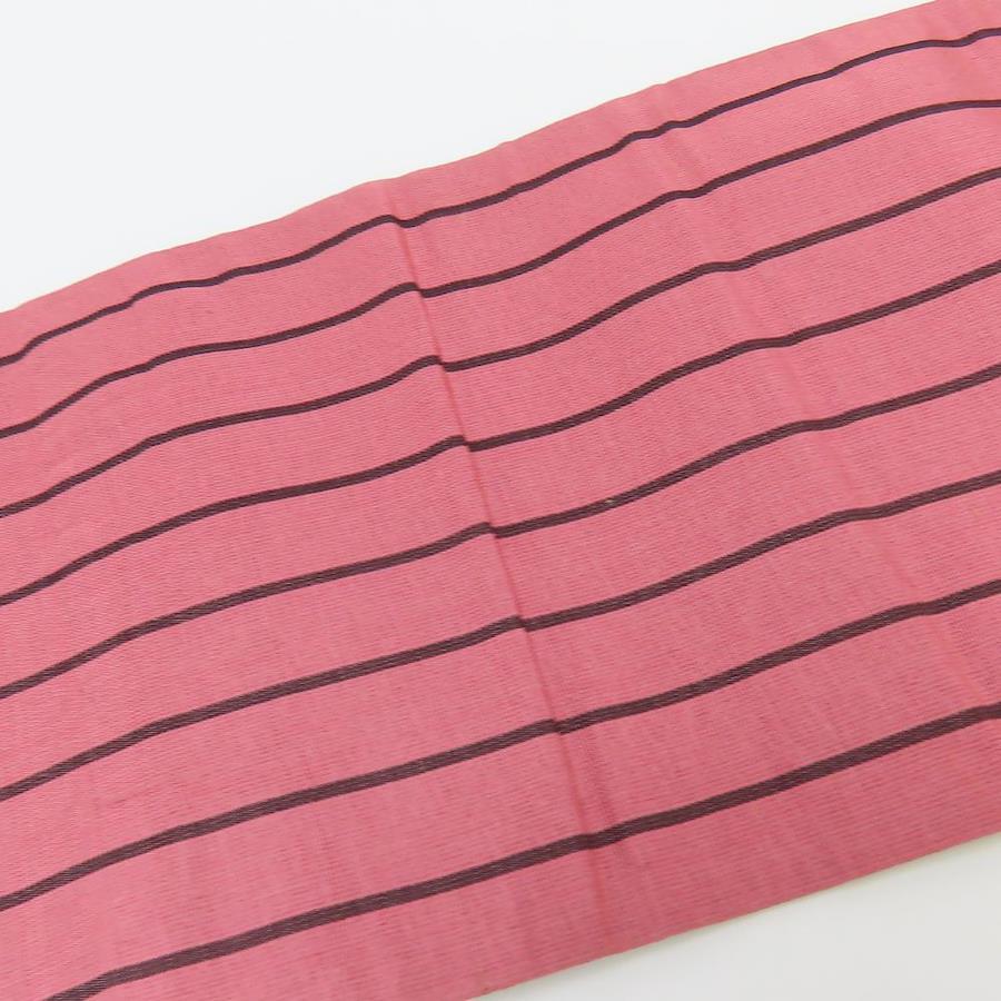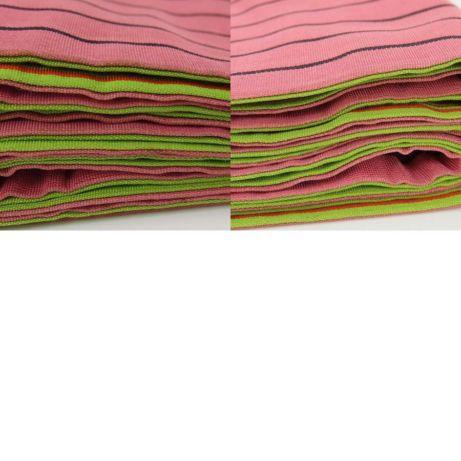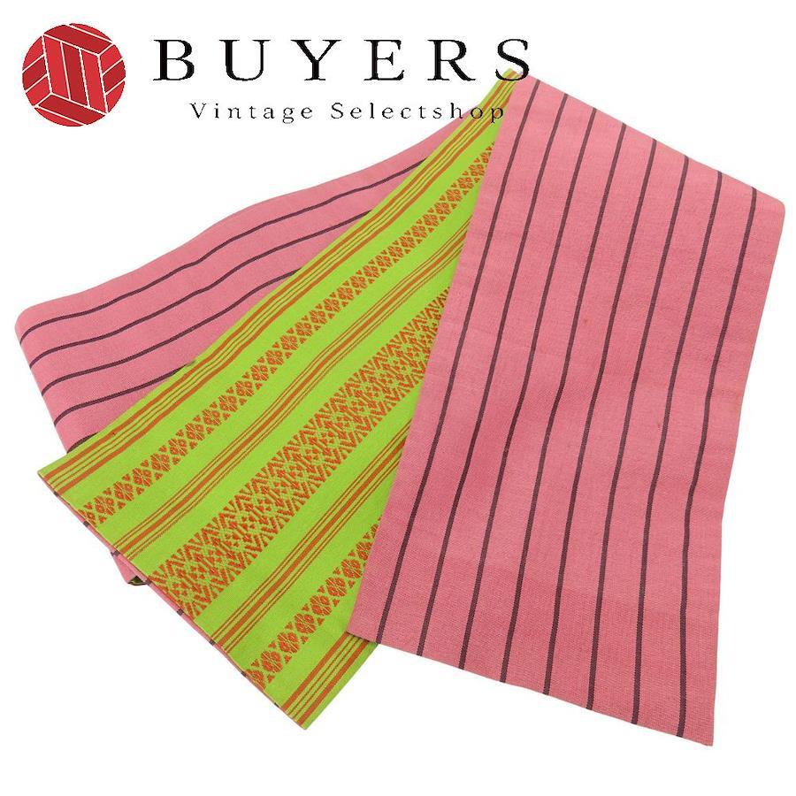 品名【中古】 半幅帯 小袋帯 踊り帯 正絹(金銀糸除く) グリーン ピンク 献上柄 縞 リバーシブル レディース 女性