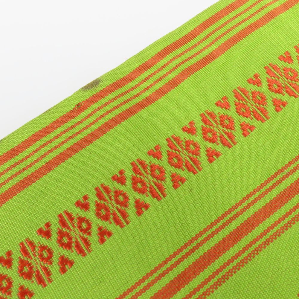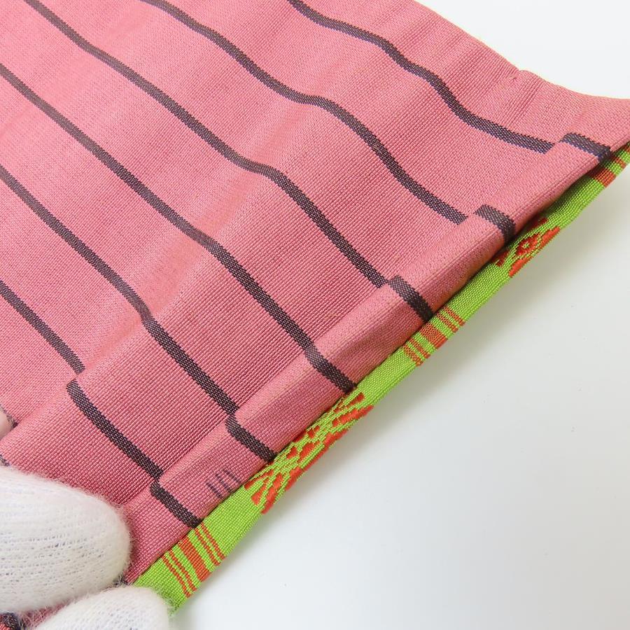 Pre-owned Half-Width Obi, Small Bag Obi, Odori Obi, Pure Silk (Gold and Silver Threads Excluded), Green and Pink, Kenjo Pattern, Striped, Reversible, Kimono, Women's