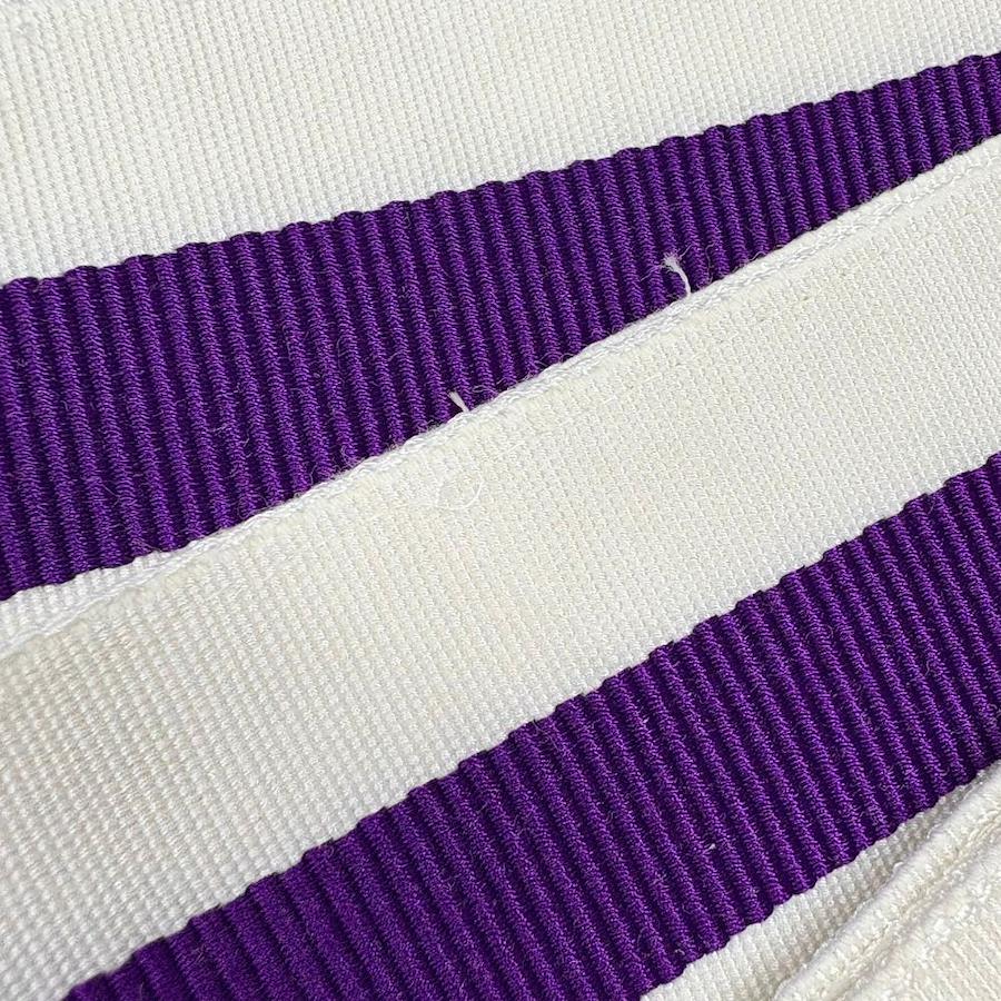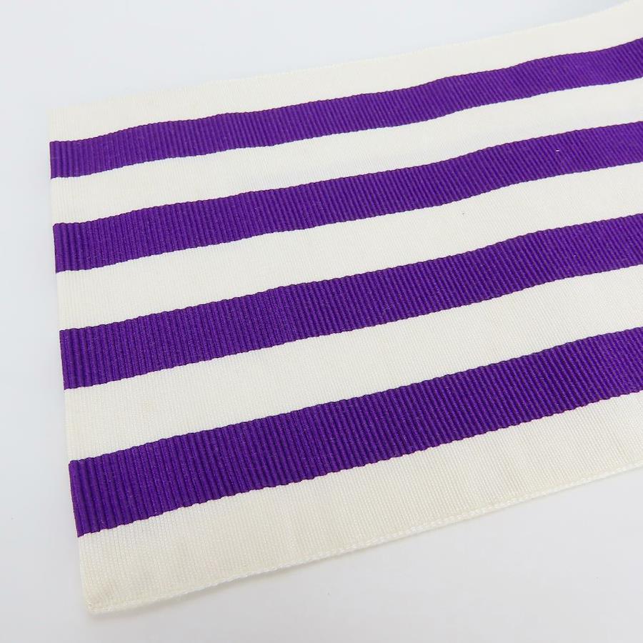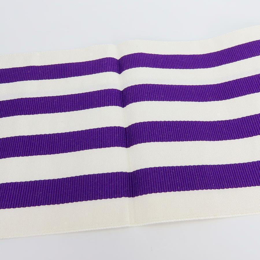 [Pre-owned] Half-width Obi, Small Bag Obi, Dance Obi, Cotton, Polyester, White, Purple, Striped, Modern, Kimono, Women's