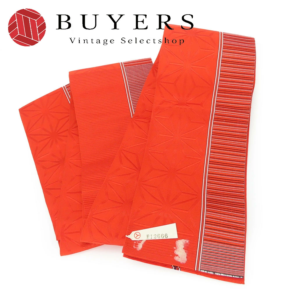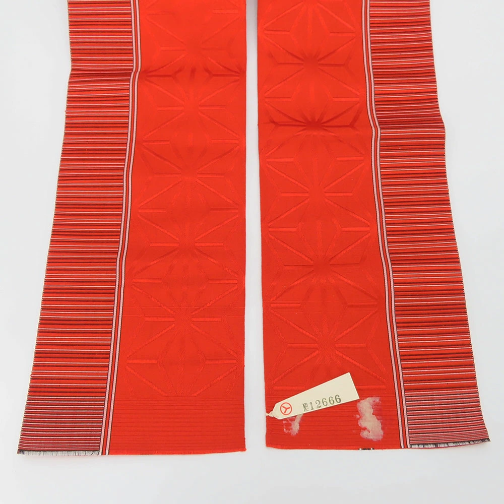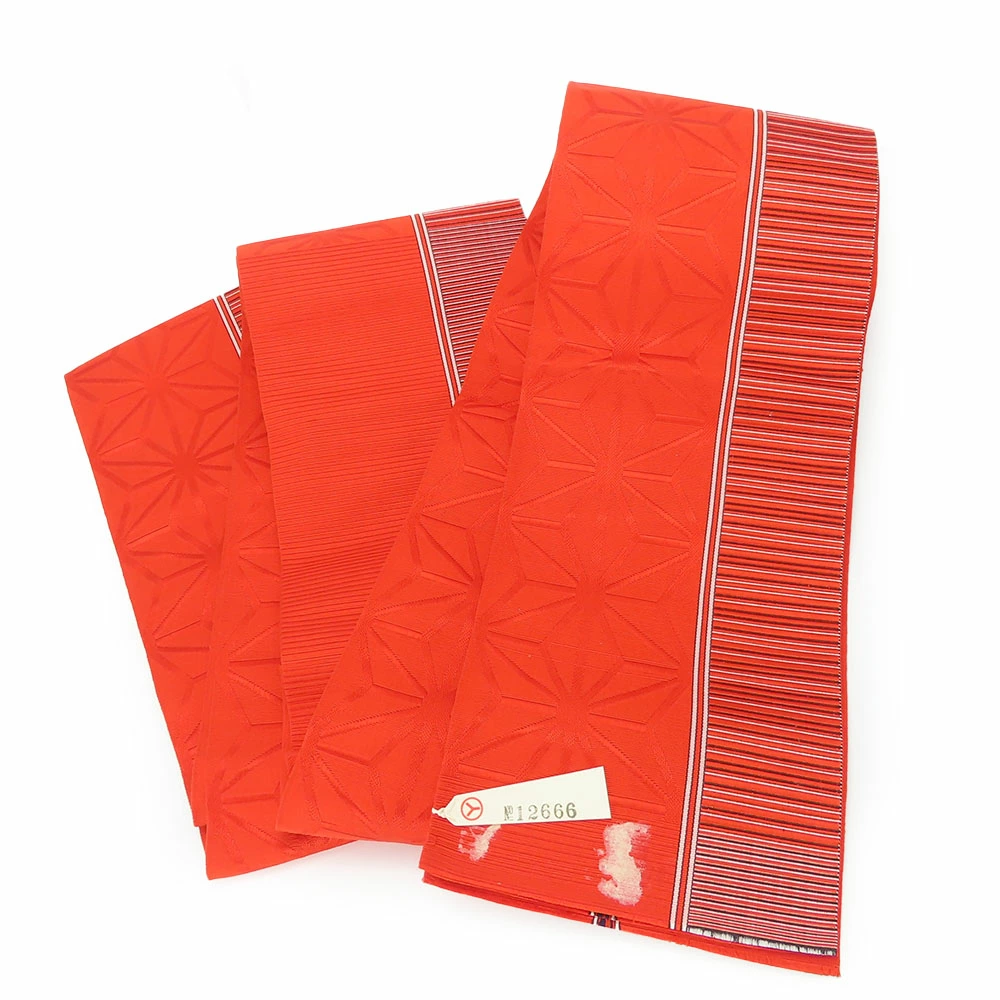| 品名 | 【中古】 半幅帯 正絹(金銀糸除く) 赤 麻の葉模様 紋小袋 博多織り レディース 女性 |