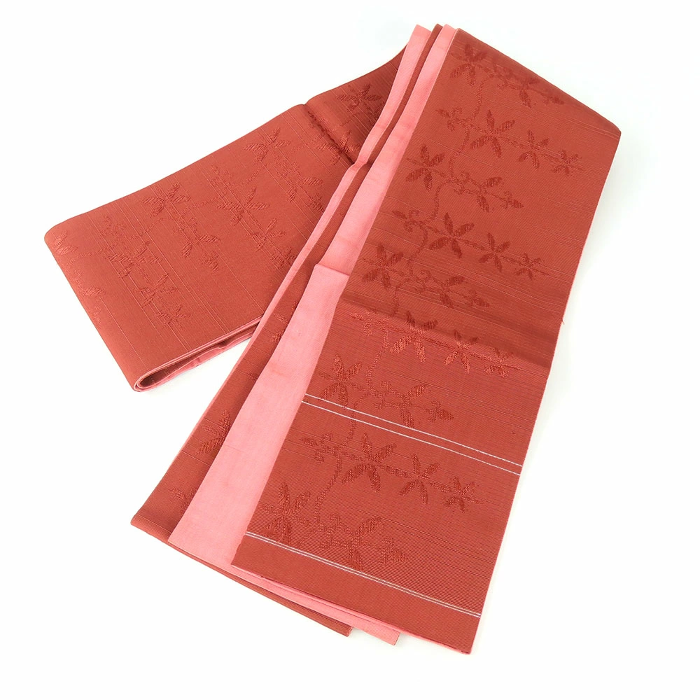 | 品名 | 【中古】 半幅帯 正絹(金銀糸除く) 銀糸 あずき くすみ色 ピンク レディース 女性 |