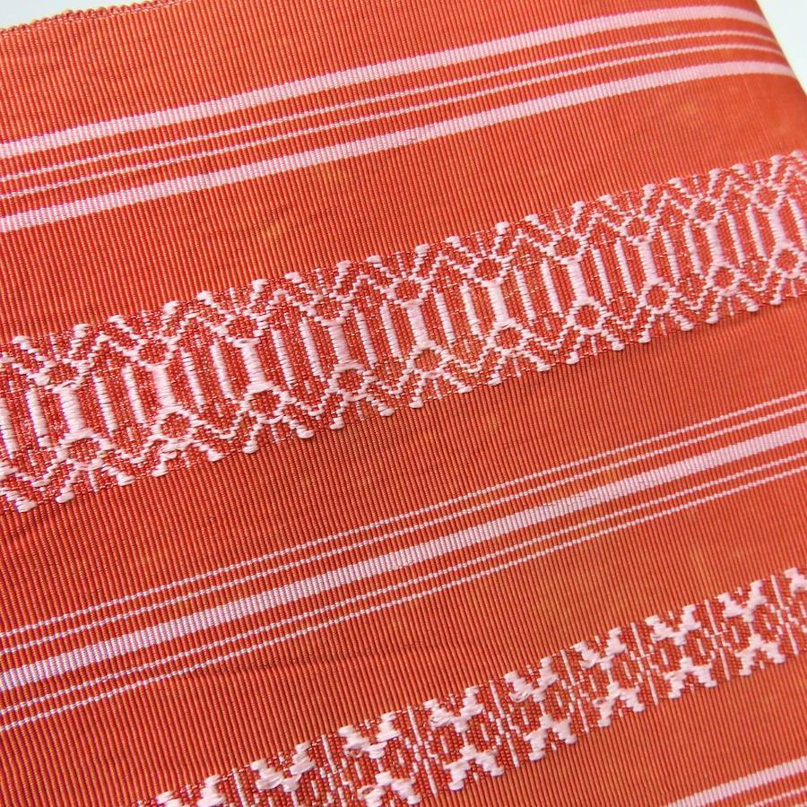 | 品名 | 【中古】 半幅帯 正絹 オレンジ サーモンピンク系 献上柄 レディース 女性 |