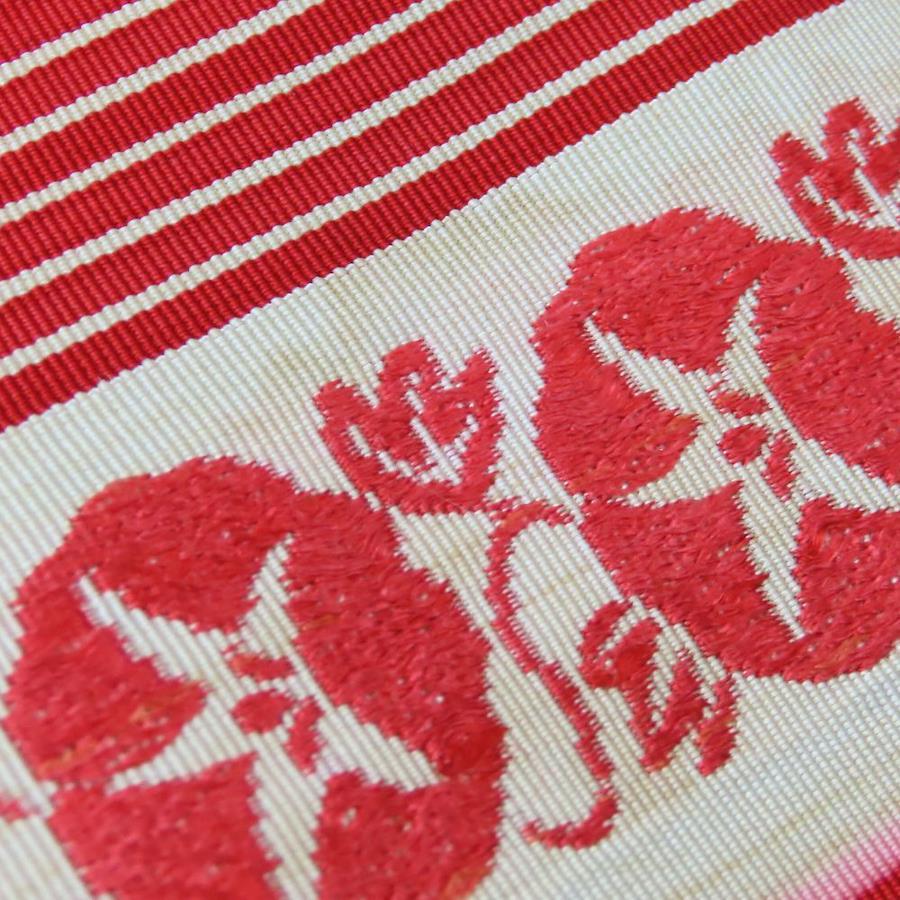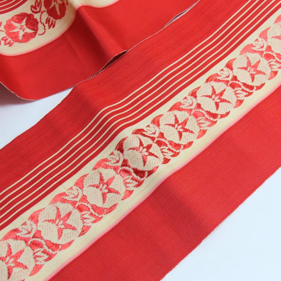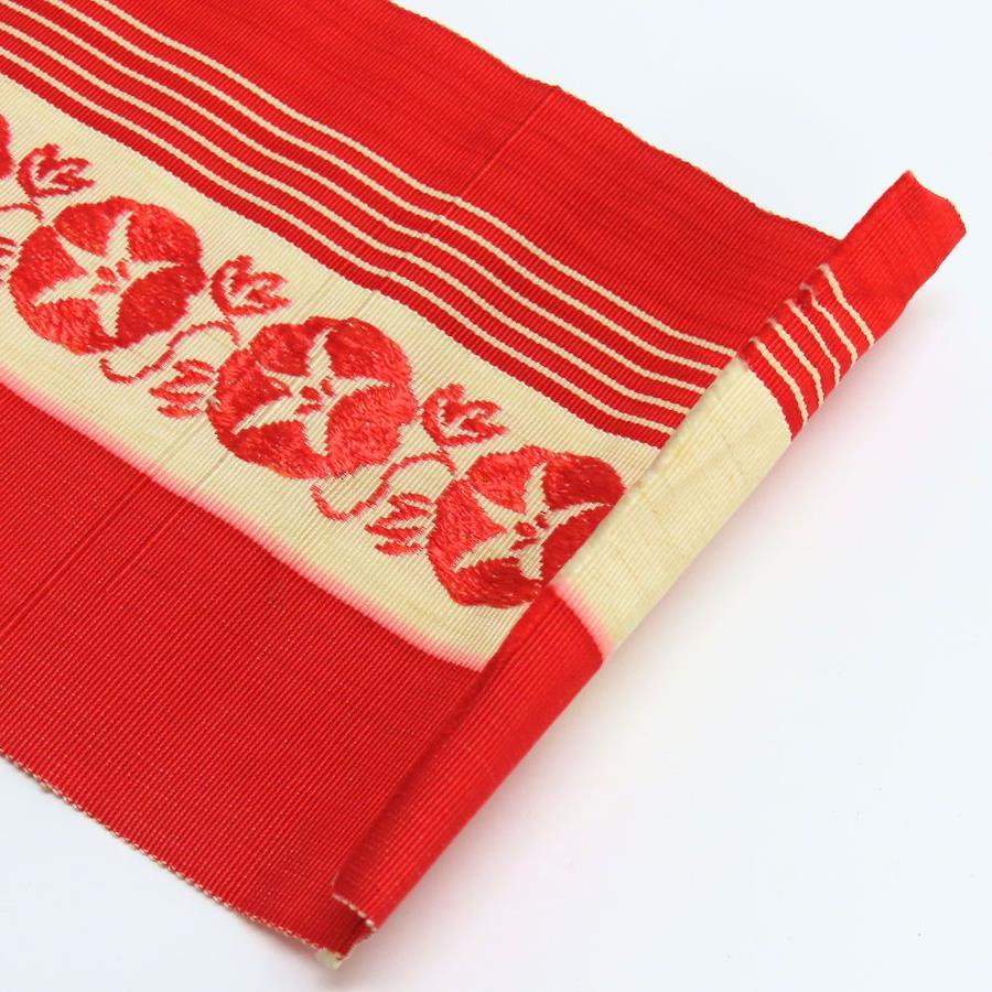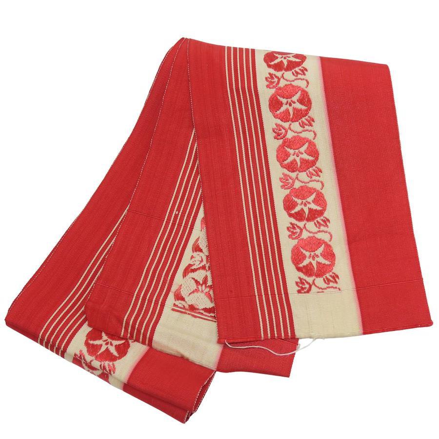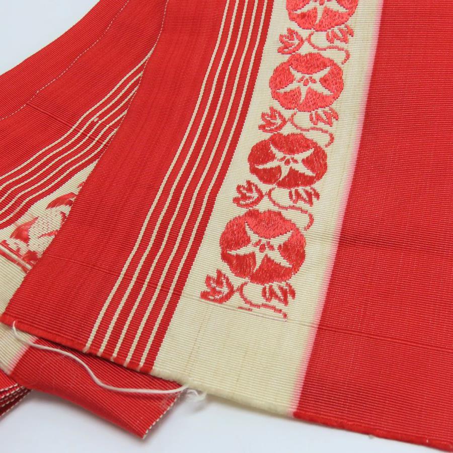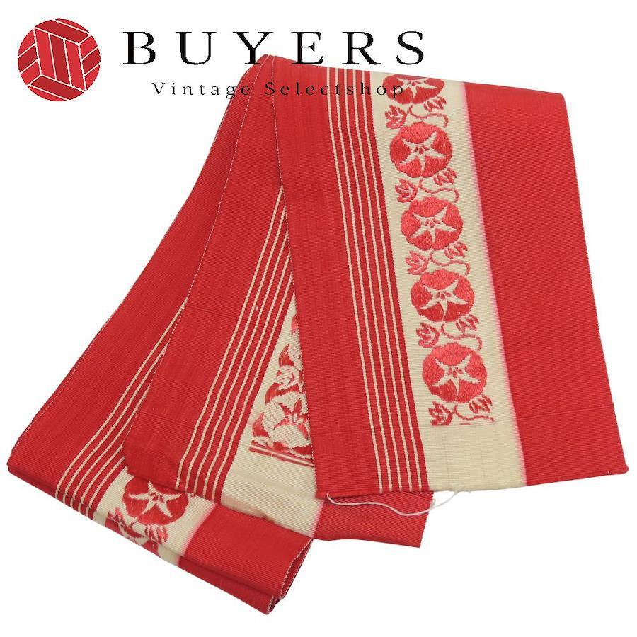 | 品名 | 【中古】 半幅帯 正絹 レッド 朝顔 縞 モダン レディース 女性 |