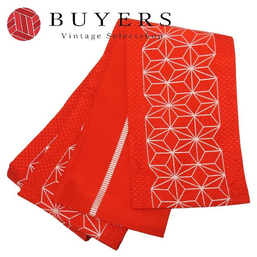 | 品名 | 【中古】 半幅帯 正絹 レッド 麻の葉模様 レトロ おしゃれ レディース 女性 |