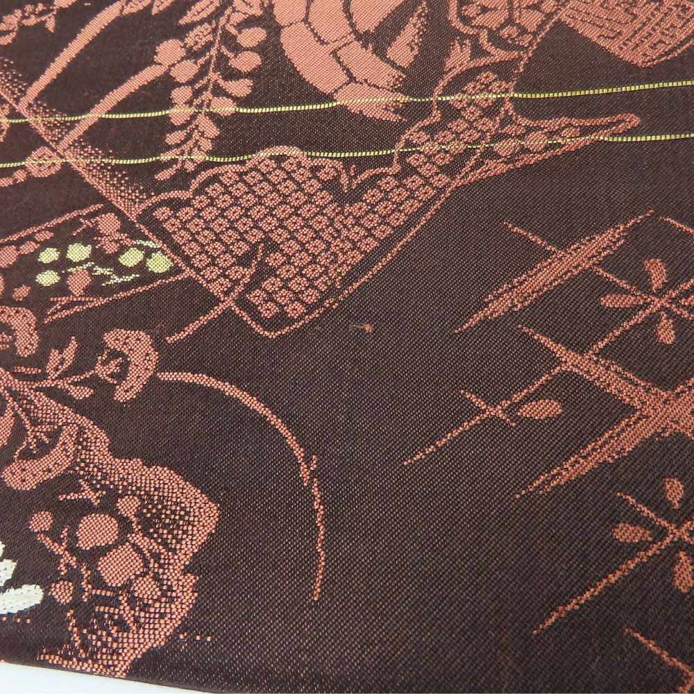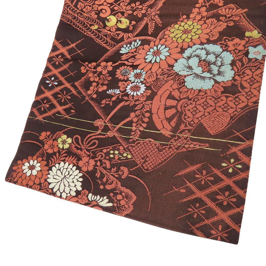 | 品名 | 【中古】 名古屋帯 九寸 正絹(金銀糸除く) チョコレート ブラウン系 くすみカラー 名古屋仕立て 六通柄 草花柄 レディース 女性 |