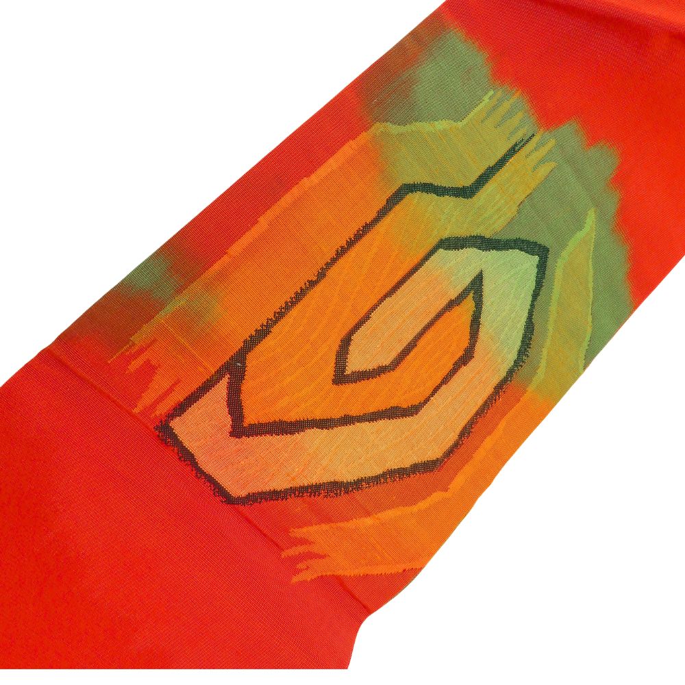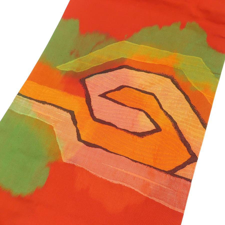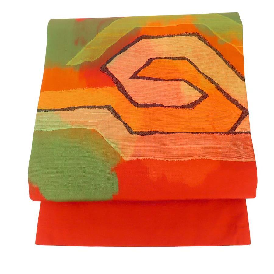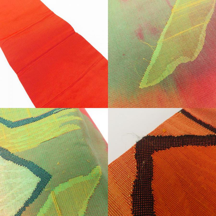 | 品名 | 【中古】 名古屋帯 九寸 正絹(金銀糸除く) レッド系 オレンジ グリーン 名古屋仕立て モダン 洒落帯 レディース 女性 |