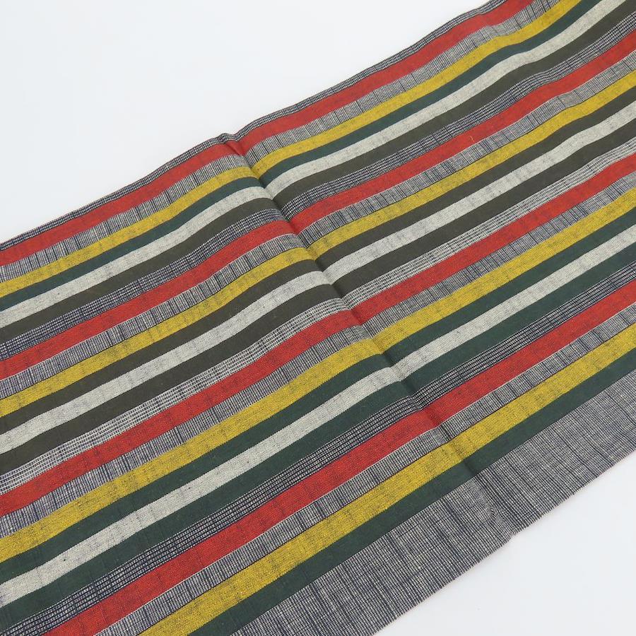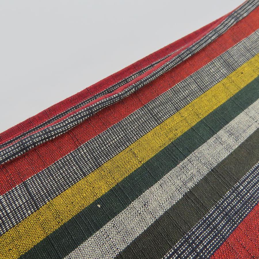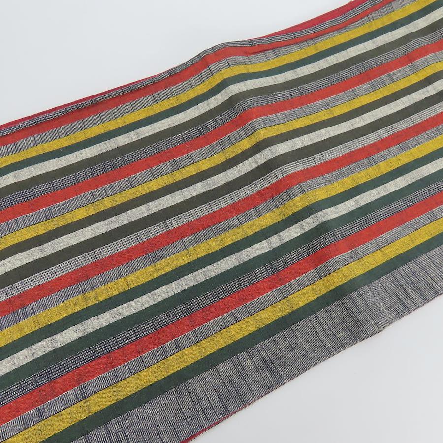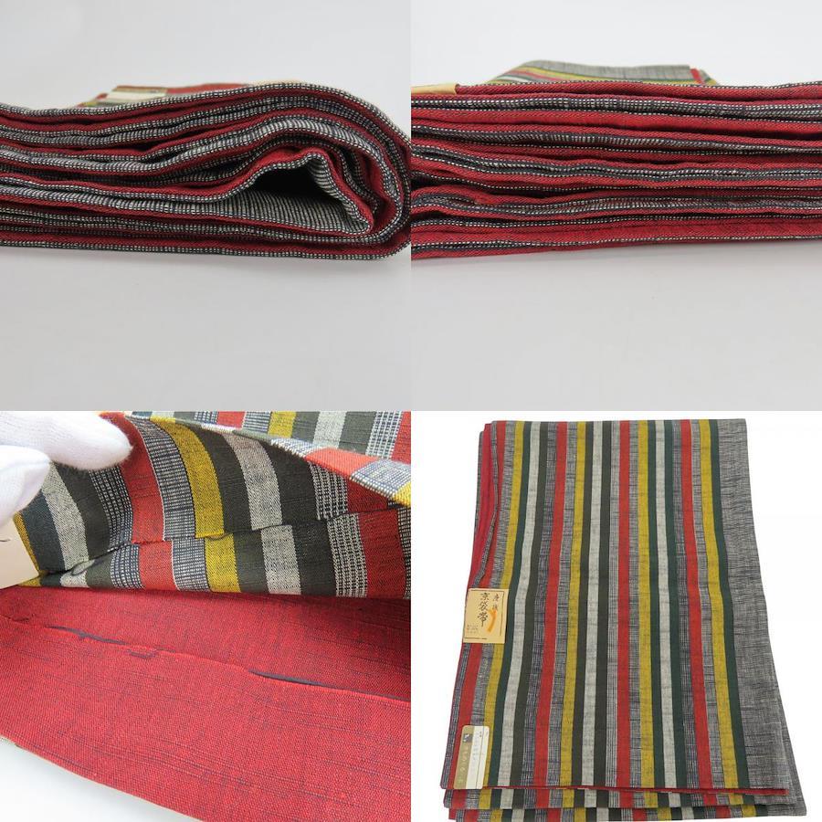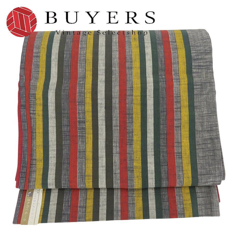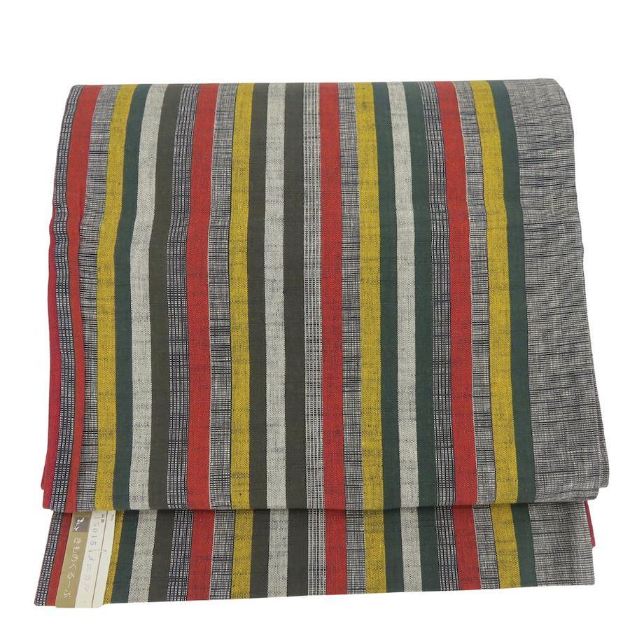 | 品名 | 【中古】 名古屋帯 京袋 しつけ糸あり 九寸 綿 グレー系 えんじ からし 縞 モダン お洒落 レディース 女性 |