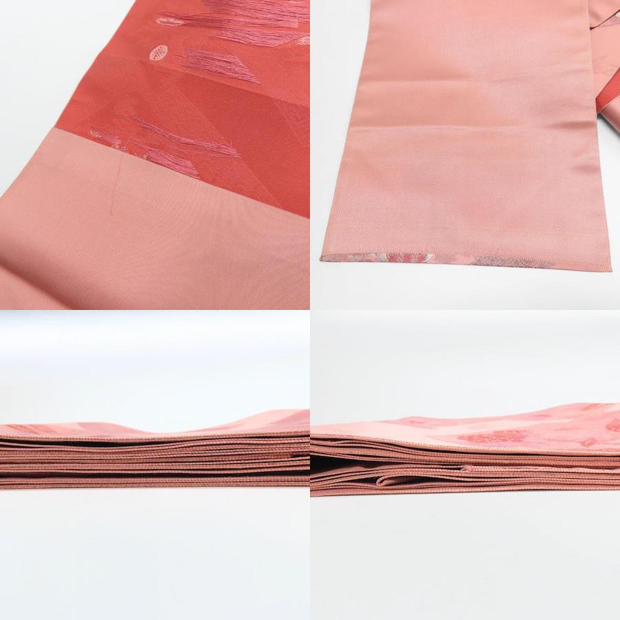 | 品名 | 【中古】 名古屋帯 八寸 正絹(金銀糸除く) くすみピンク パープル系 松葉仕立て 洒落帯 モダン レディース 女性 |