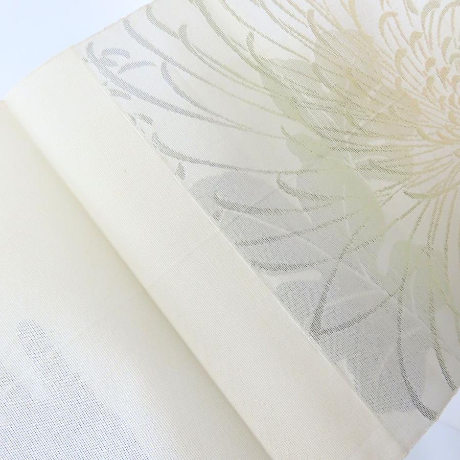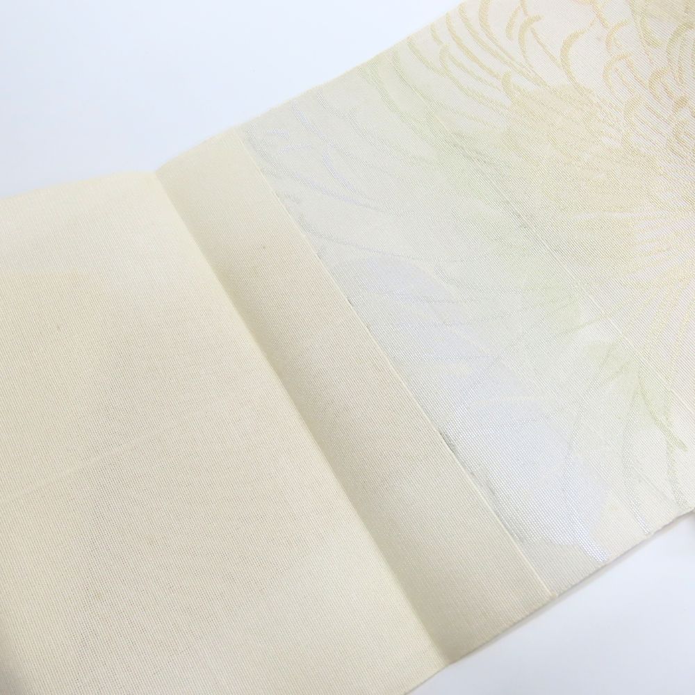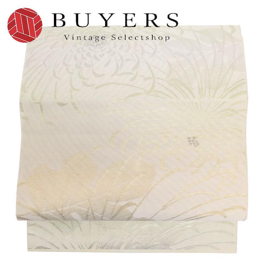 | 品名 | 【中古】 名古屋帯 八寸 正絹(金銀糸除く) ホワイト系 ゴールド 松葉仕立て 夏物 花柄 レディース 女性 |