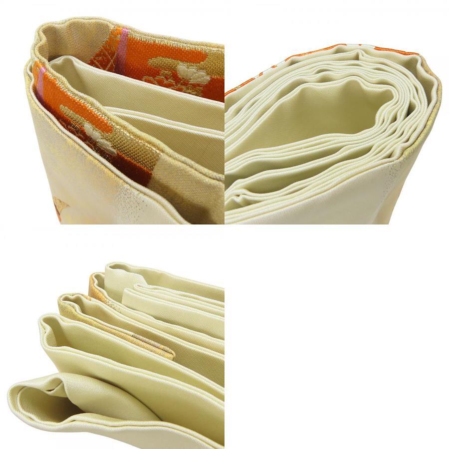 [Pre-owned] Nagoya Obi with Bundled Noshi and Classic Flower Design, 9 inches, Pure Silk (excluding gold and silver threads), Gold, Silver, Ivory, Multicolor, Nagoya Style, Taiko Pattern, Classic Japanese Clothing, Kimono, Women's