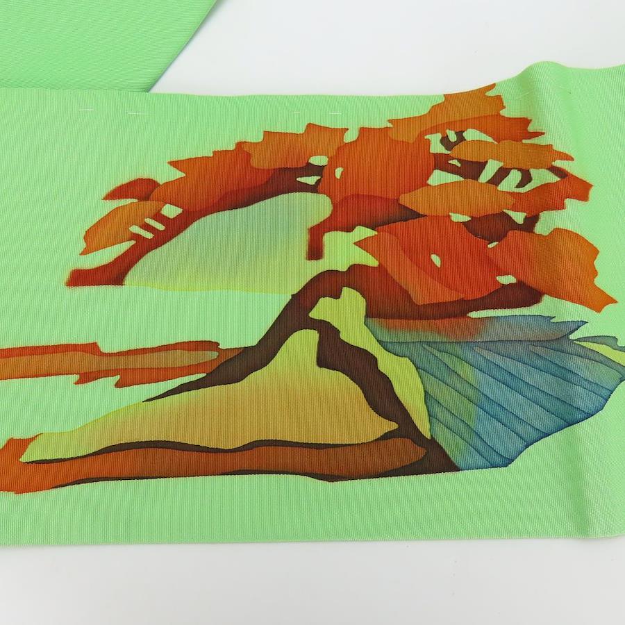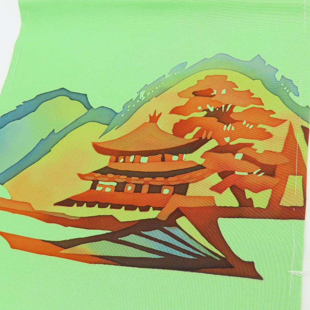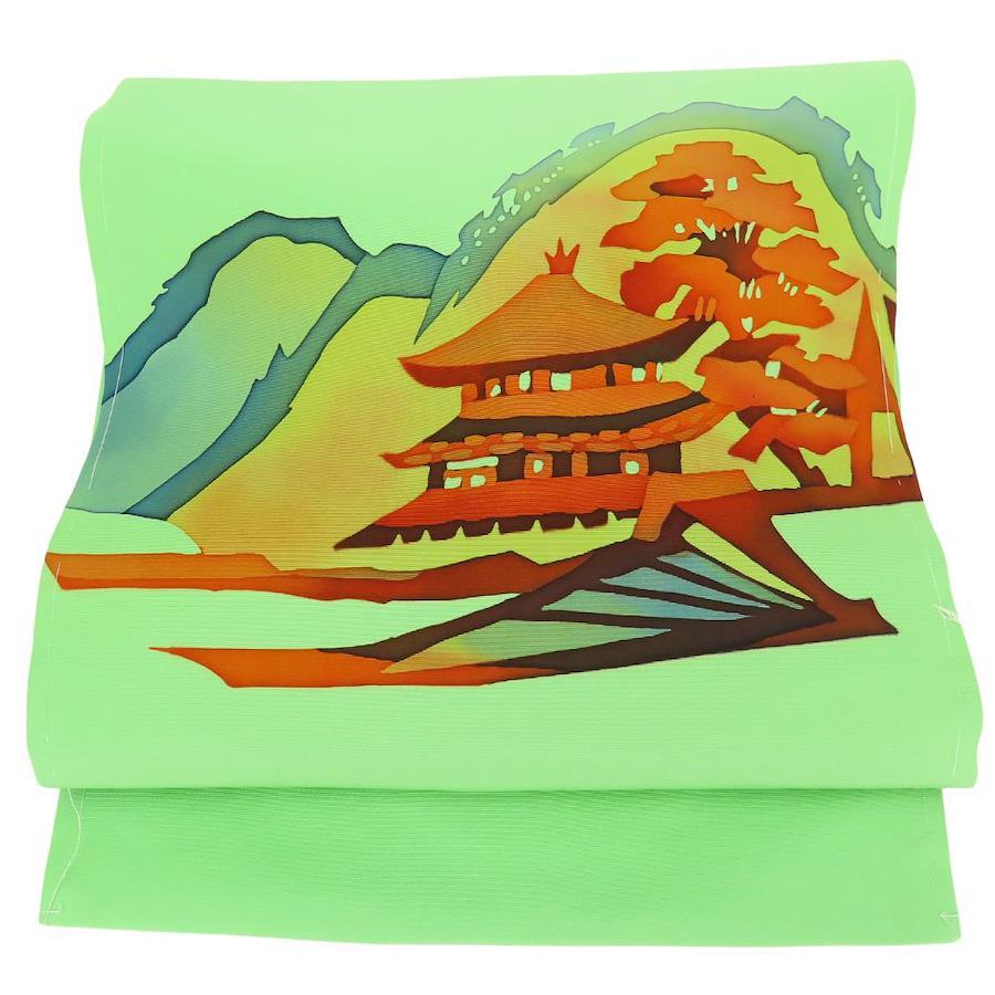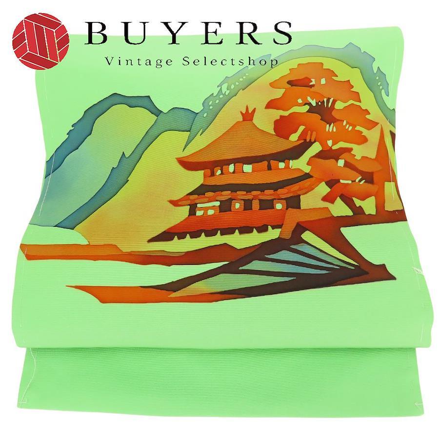 | 品名 | 【中古】 名古屋帯 正絹(金銀糸除く) グリーン 風景柄 お洒落 レディース 女性 |