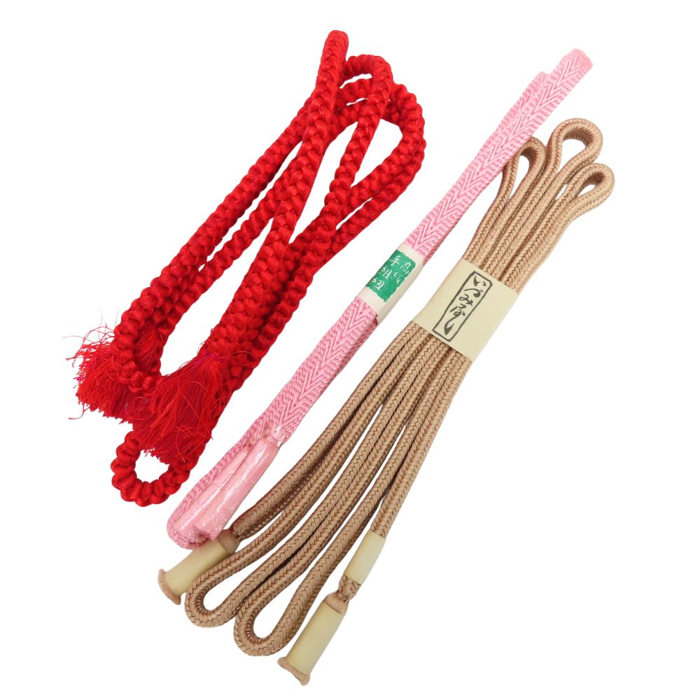 | 品名 | 【中古】 和装小物 帯締め まとめ売り 正絹 レッド ピンク ベージュ 3本セット 平組紐 丸組紐 レディース 女性 |