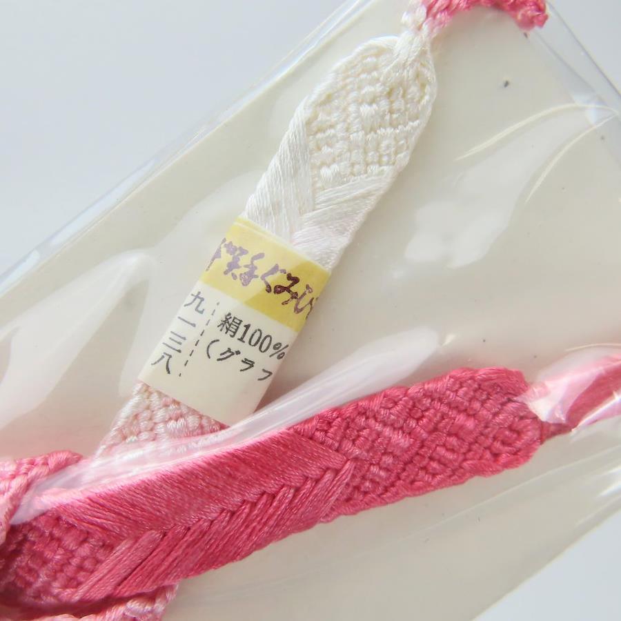 Used Japanese Haori Cord Set (3 Pieces) - Pure Silk (Gold and Silver Threads Excluded) - White, Pink, Orange - Flat Weave, Hand-Braided Cord - Casual, Kimono, Women's