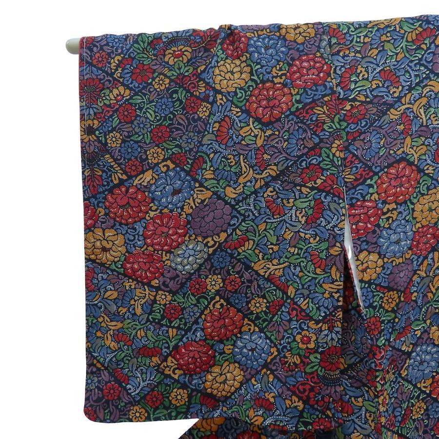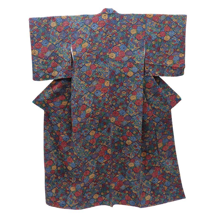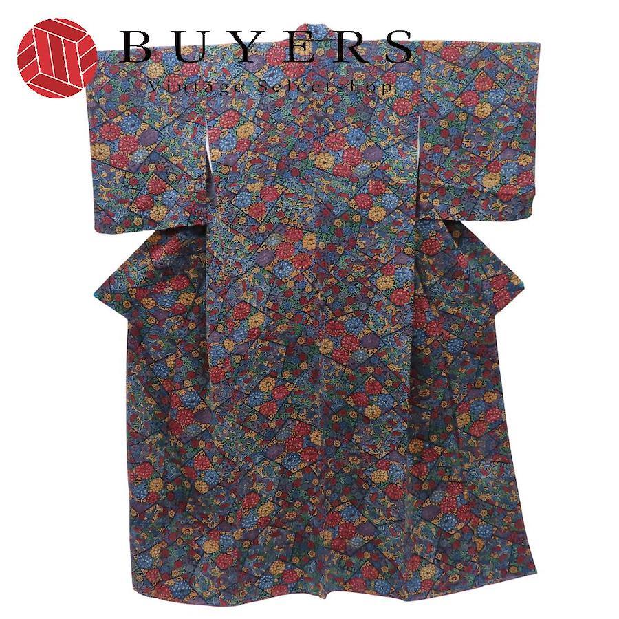 | 品名 | 【中古】 小紋 しつけ糸あり 正絹(金銀糸除く) ブルー系 マルチカラー モダン レトロ お洒落 レディース 女性 |
