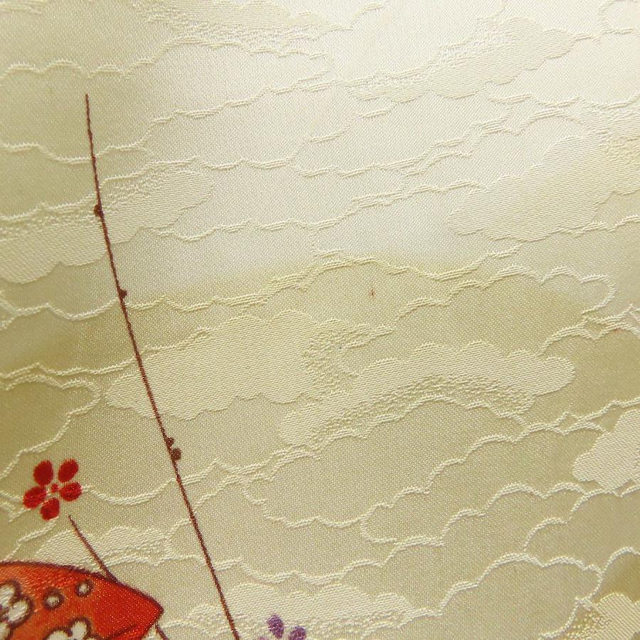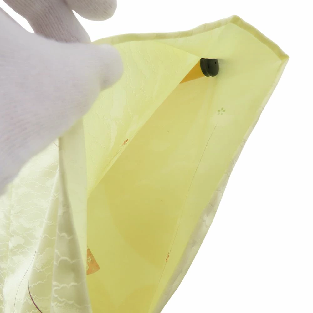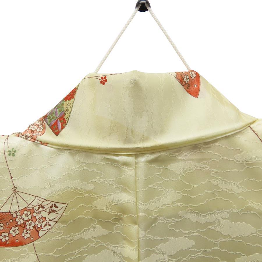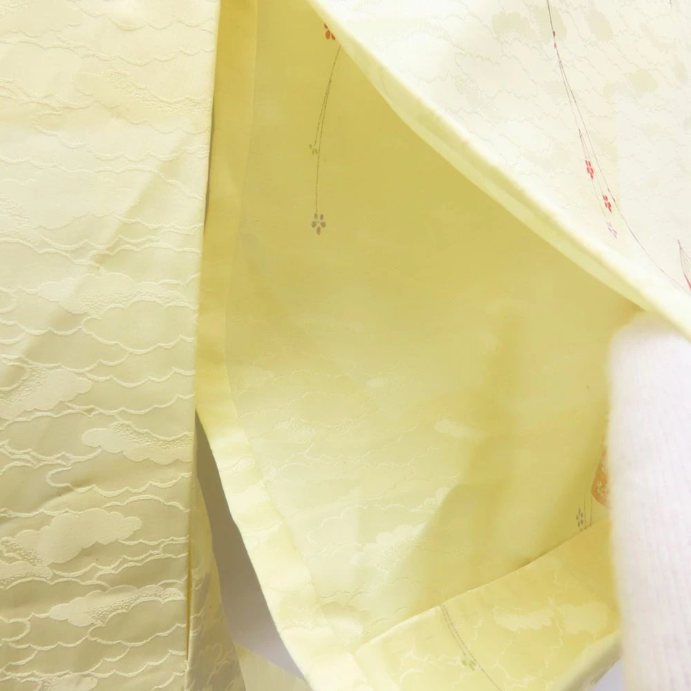 [Pre-owned] Small Pattern Kimono, Synthetic Fiber, Pastel Yellow, Multicolor, Fan Pattern, Japanese Kimono, Women's