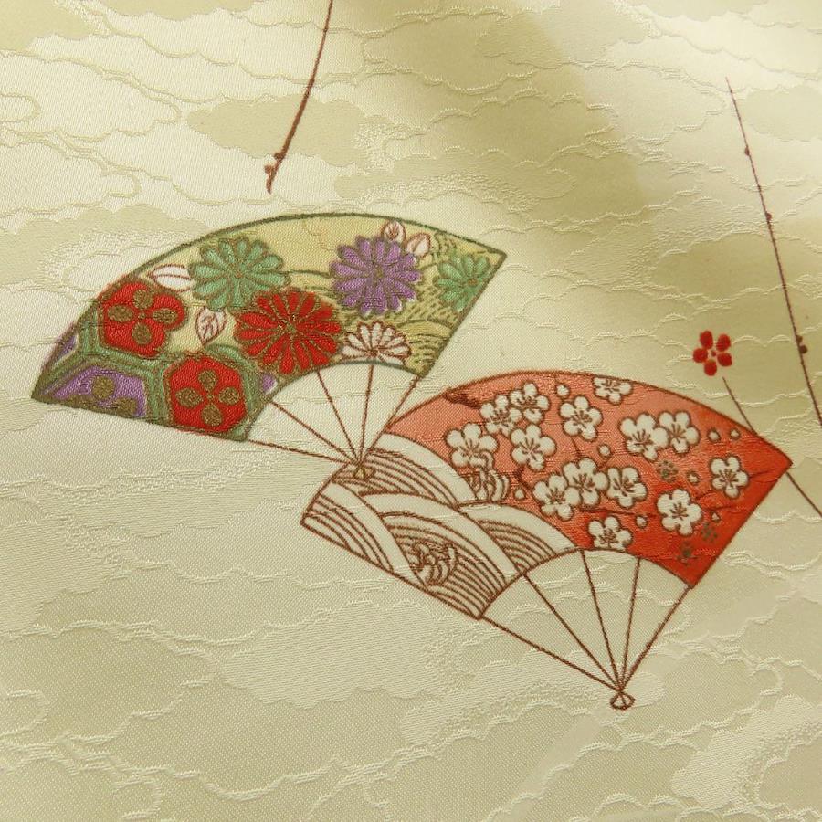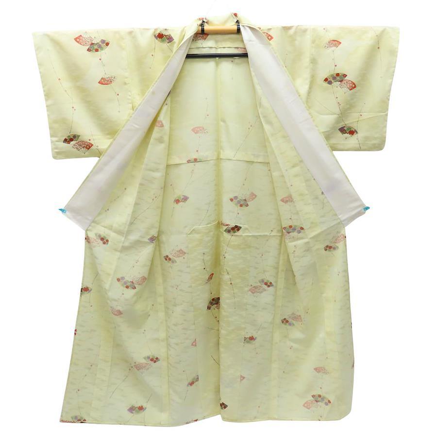 品名【中古】 小紋 化学繊維 パステルイエロー マルチカラー 扇柄 レディース 女性
