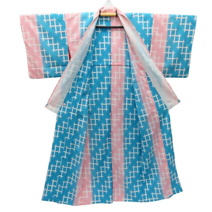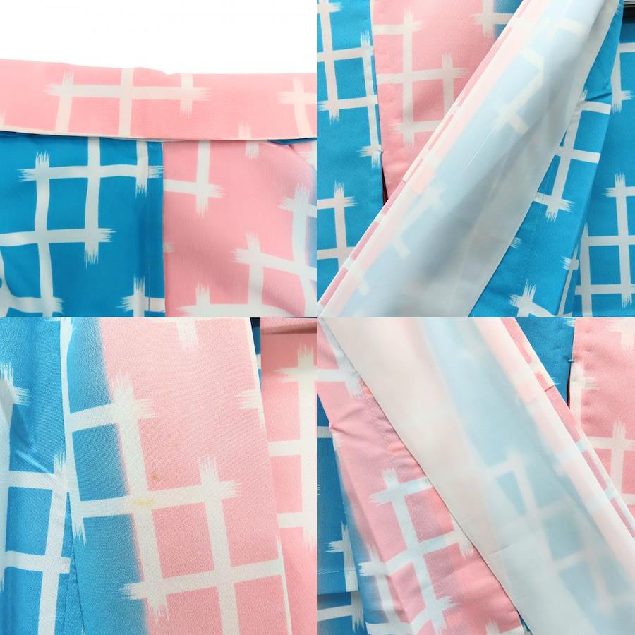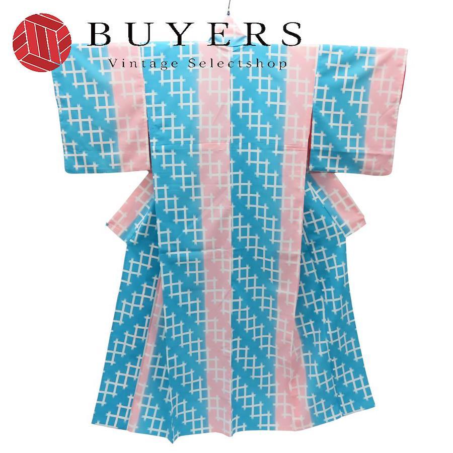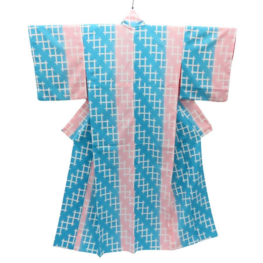 | 品名 | 【中古】 小紋 単衣 化学繊維 水色 ピンク 白 レディース 女性 |