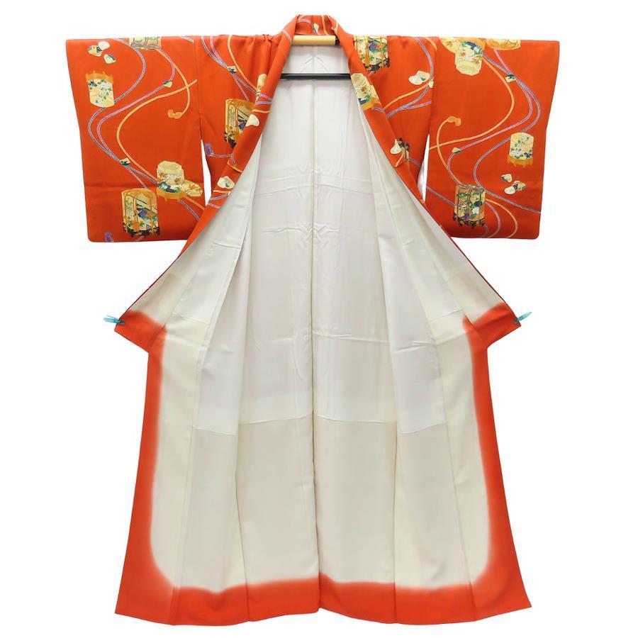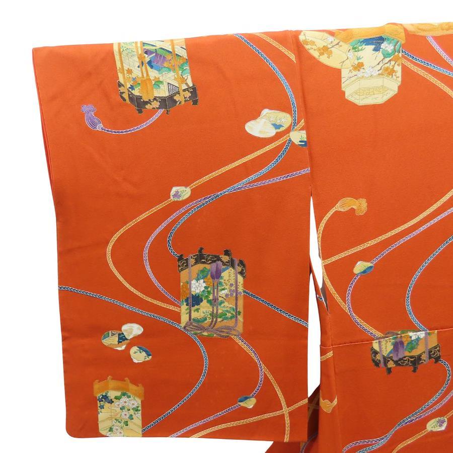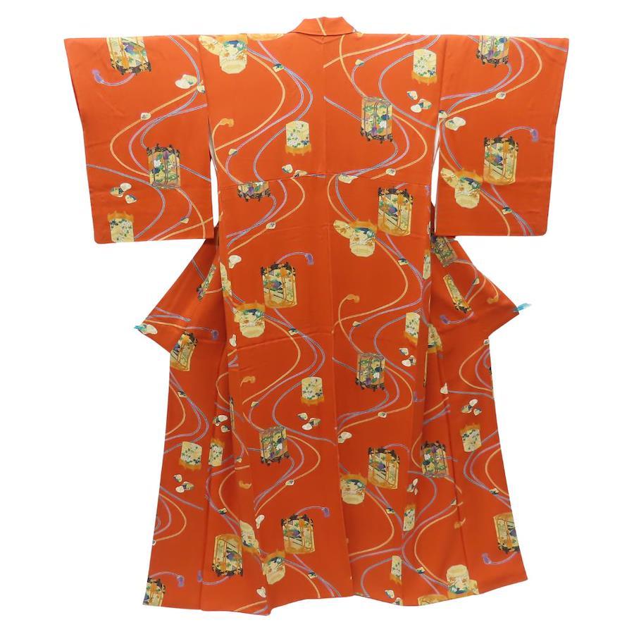 | 品名 | 【中古】 小紋 正絹 オレンジ系 マルチカラー 香炉 紐柄 モダン レディース 女性 |