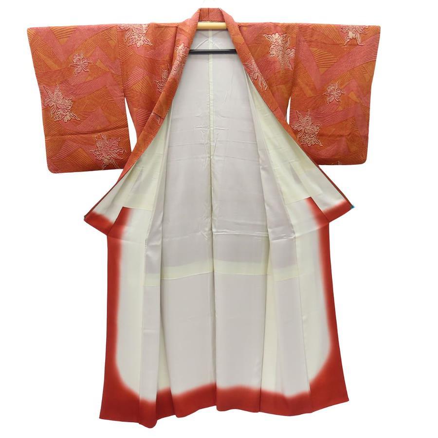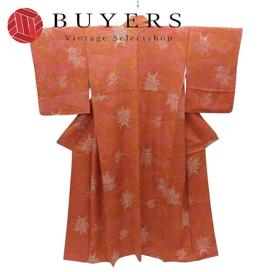 | 品名 | 【中古】 小紋 正絹 オレンジ系 花 モダン レディース 女性 |