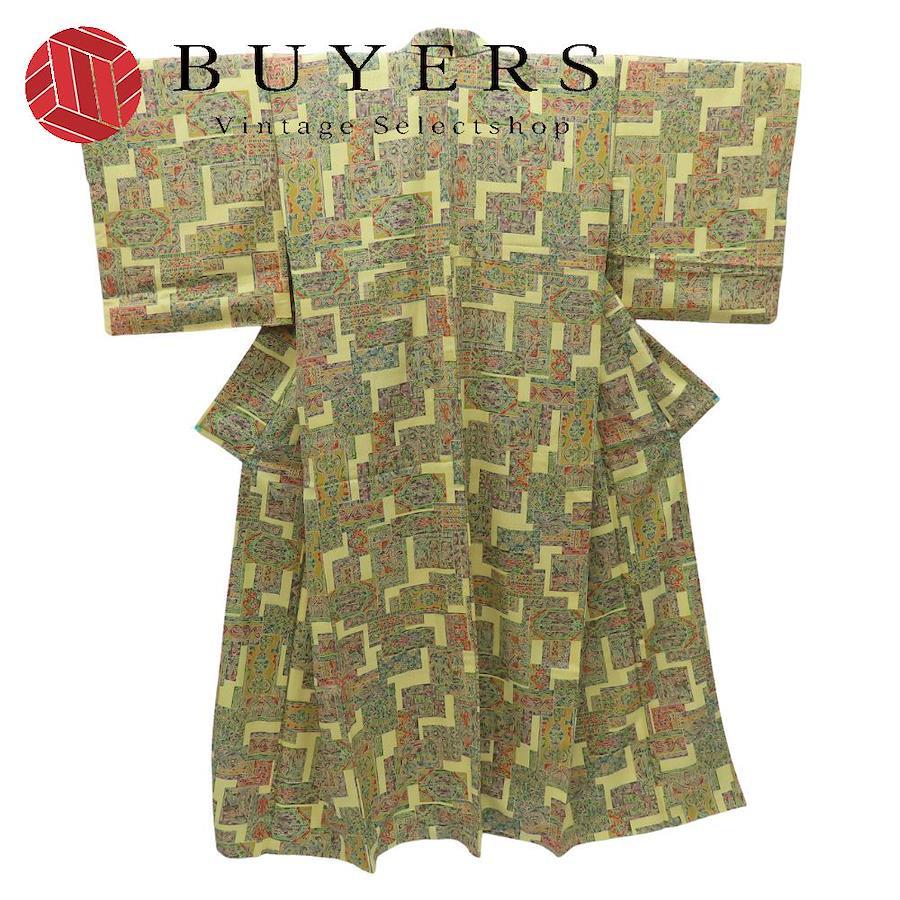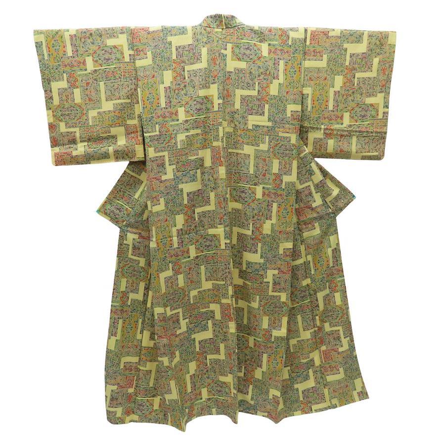 | 品名 | 【中古】 小紋 正絹 黄色系 緑 マルチカラー カジュアル モダン 幾何学模様 レディース 女性 |