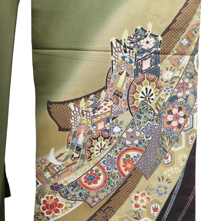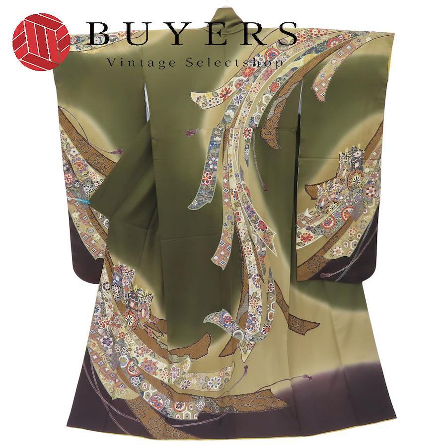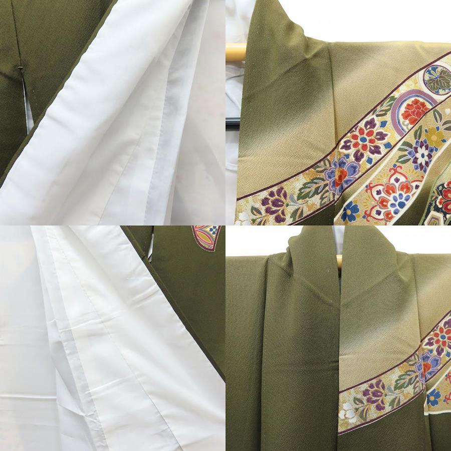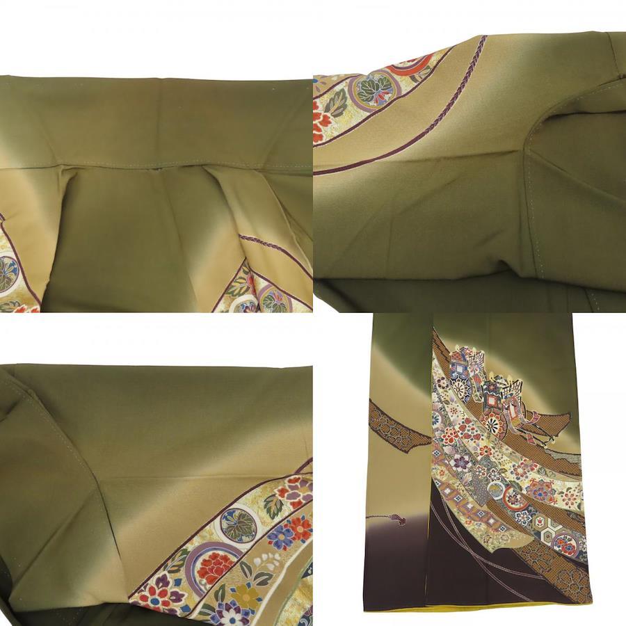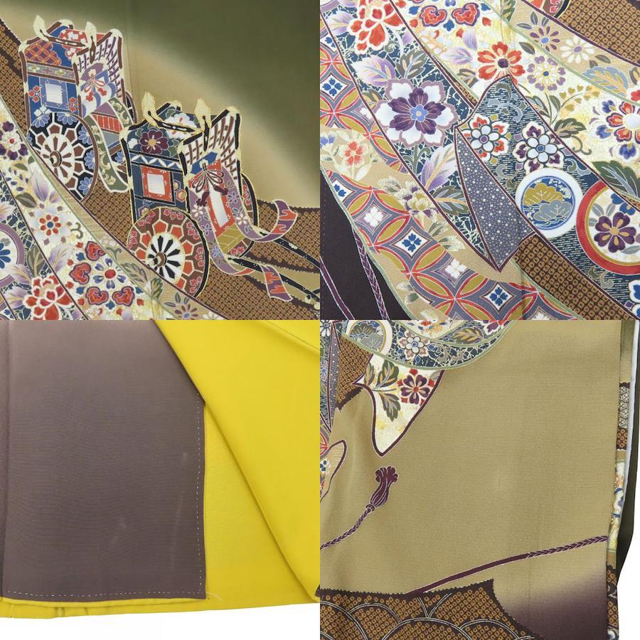 品名【中古】 振袖 正絹 カーキ ベージュ パープル系 マルチカラー 成人式 古典柄 レディース 女性
