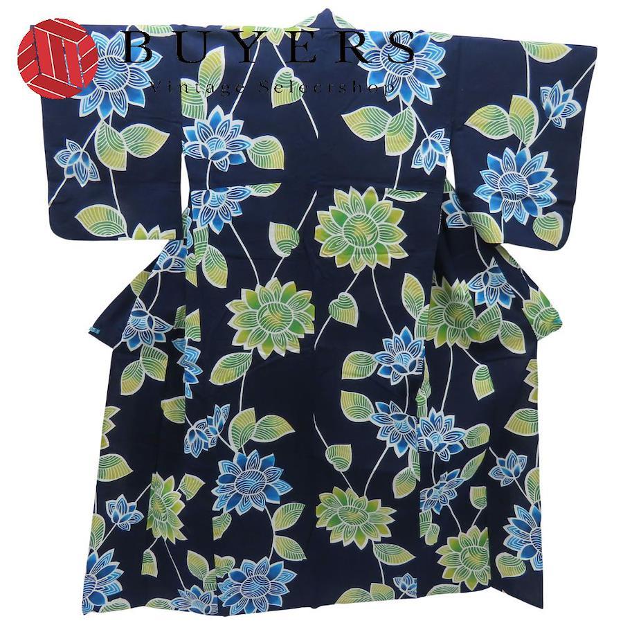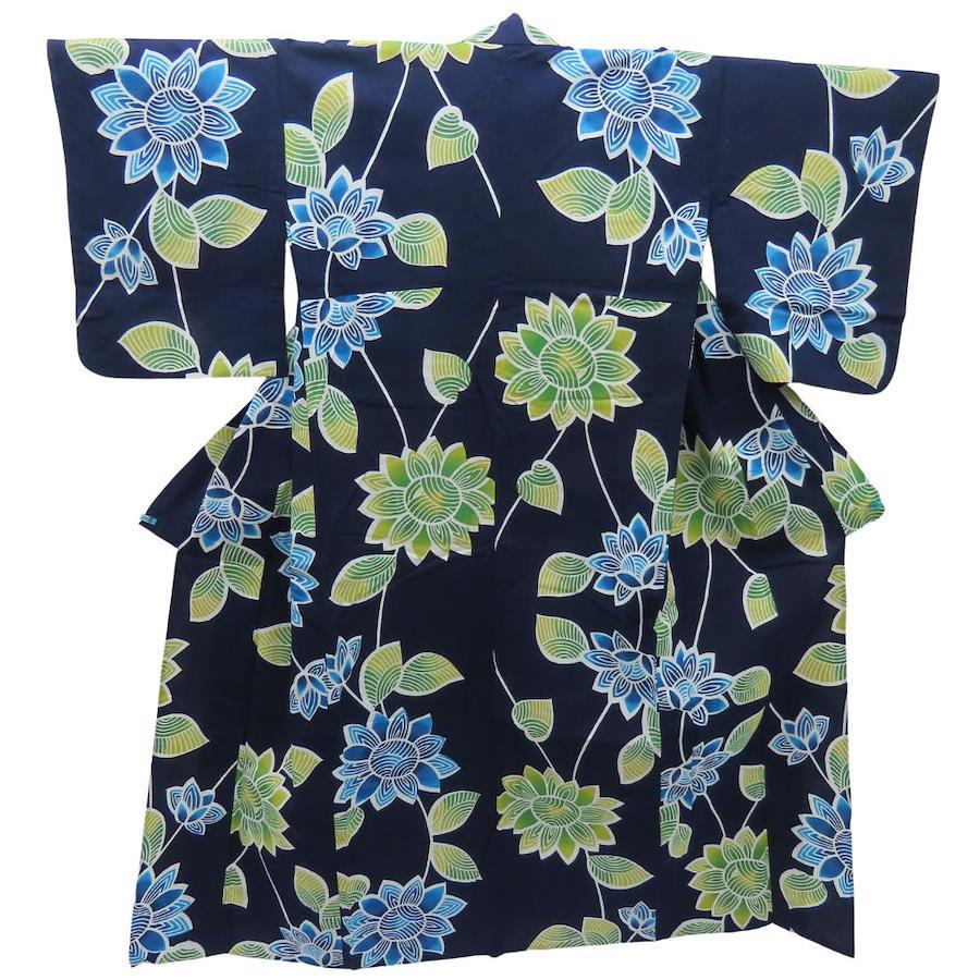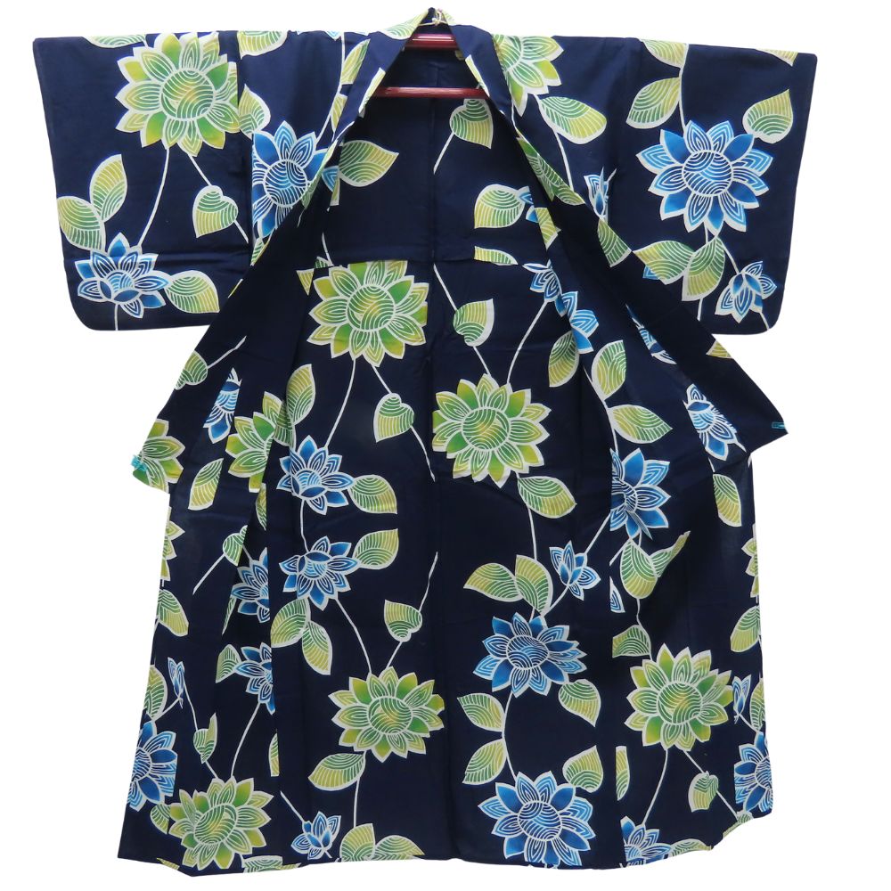 | 品名 | 【中古】 浴衣 グラデーション 綿 紺 白 マルチカラー 草花模様 お洒落 大人可愛い レディース 女性 |