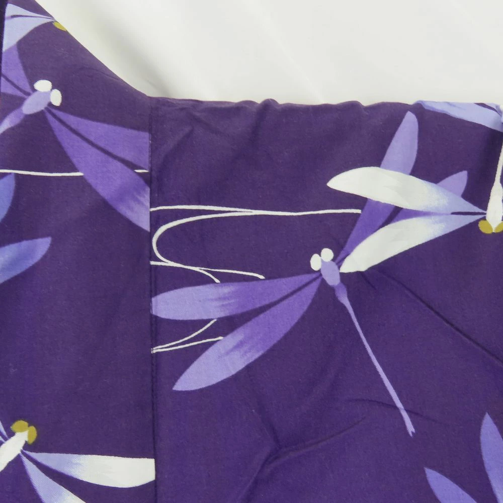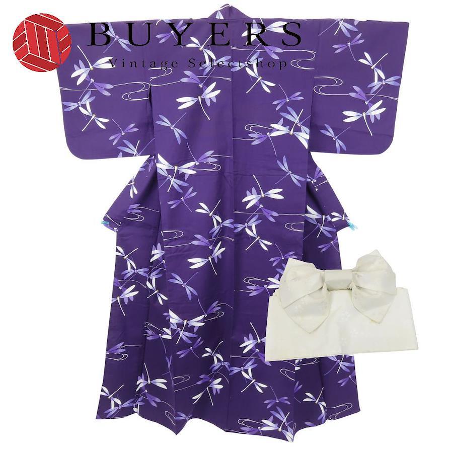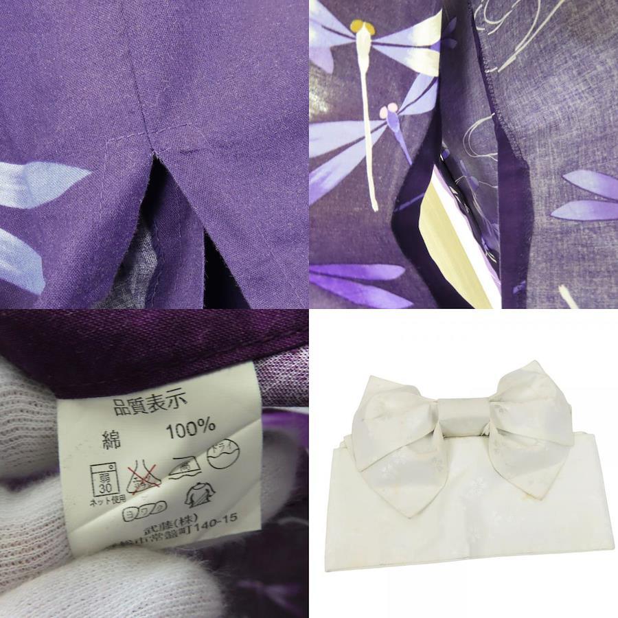 品名【中古】 浴衣 セット 作り帯 綿 ポリエステル パープル ホワイト 半巾帯 リボン 可愛い レディース 女性