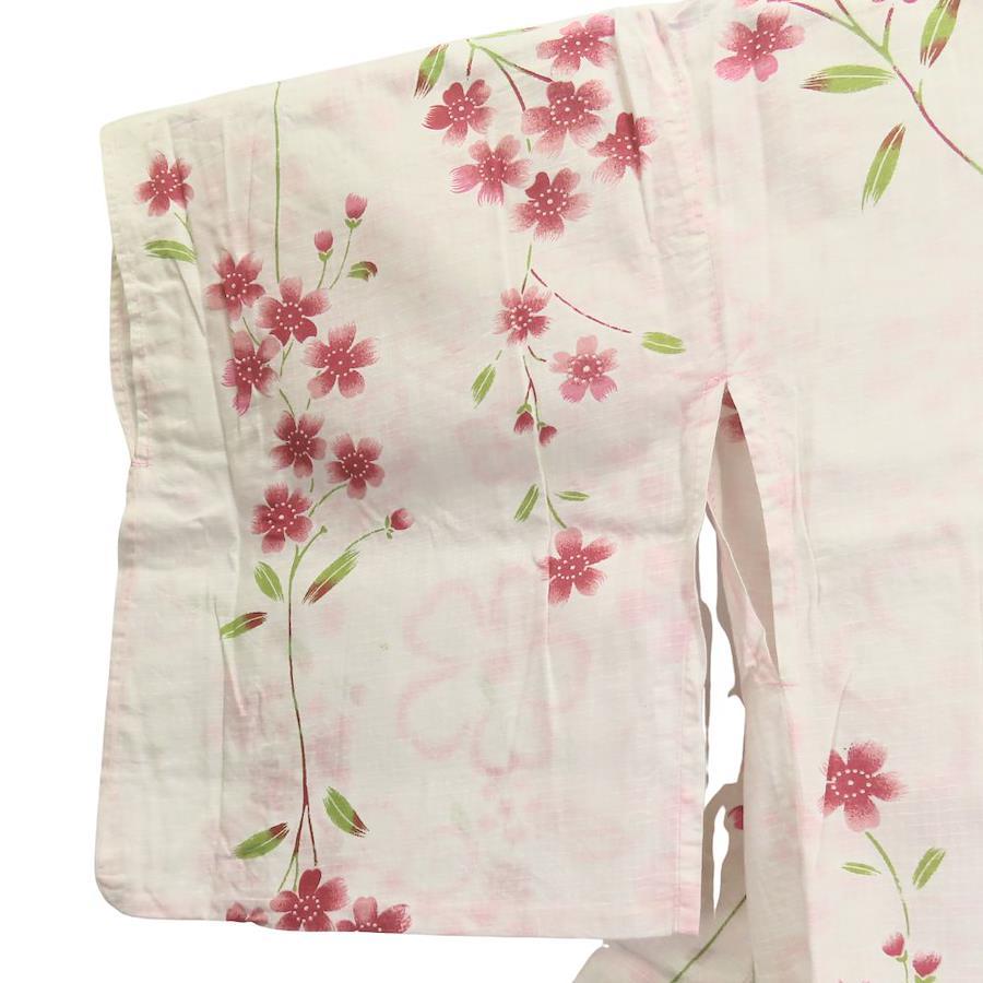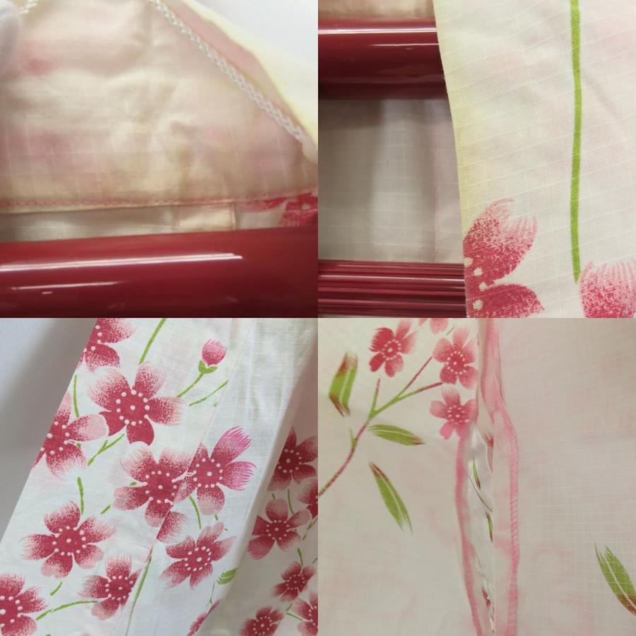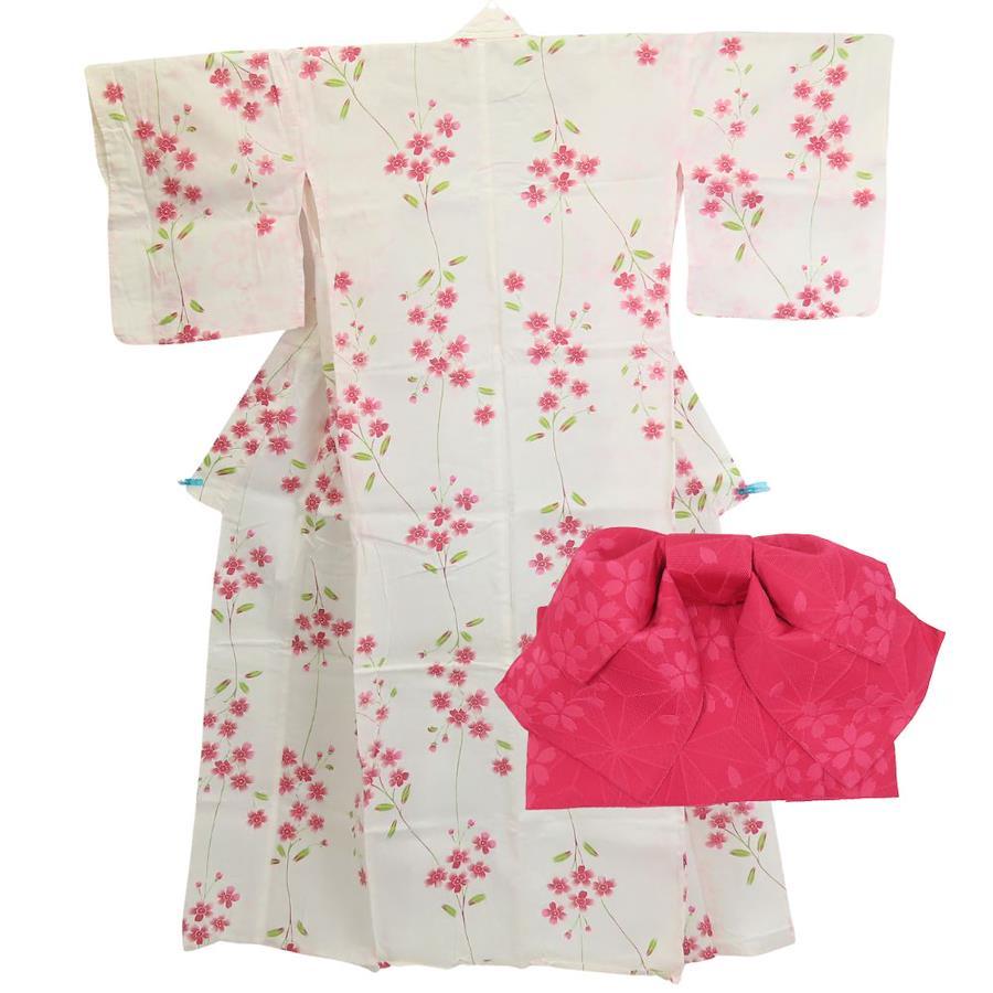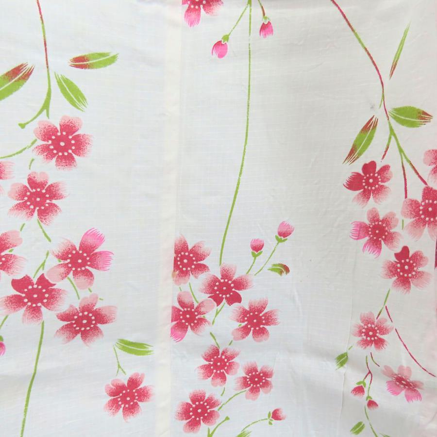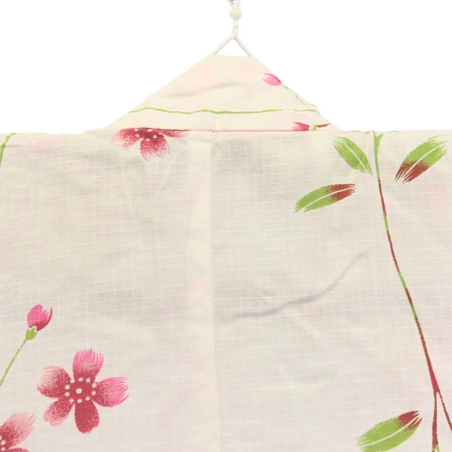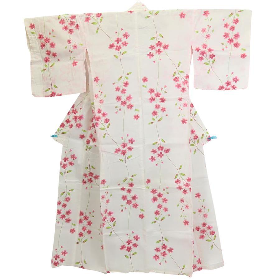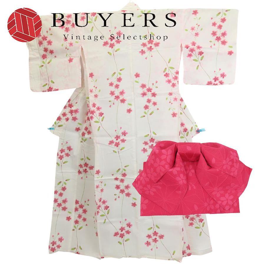 | 品名 | 【中古】 浴衣 セット 作り帯 綿 ポリエステル ホワイト ピンク 変わり生地 半巾帯 リボン レディース 女性 |
