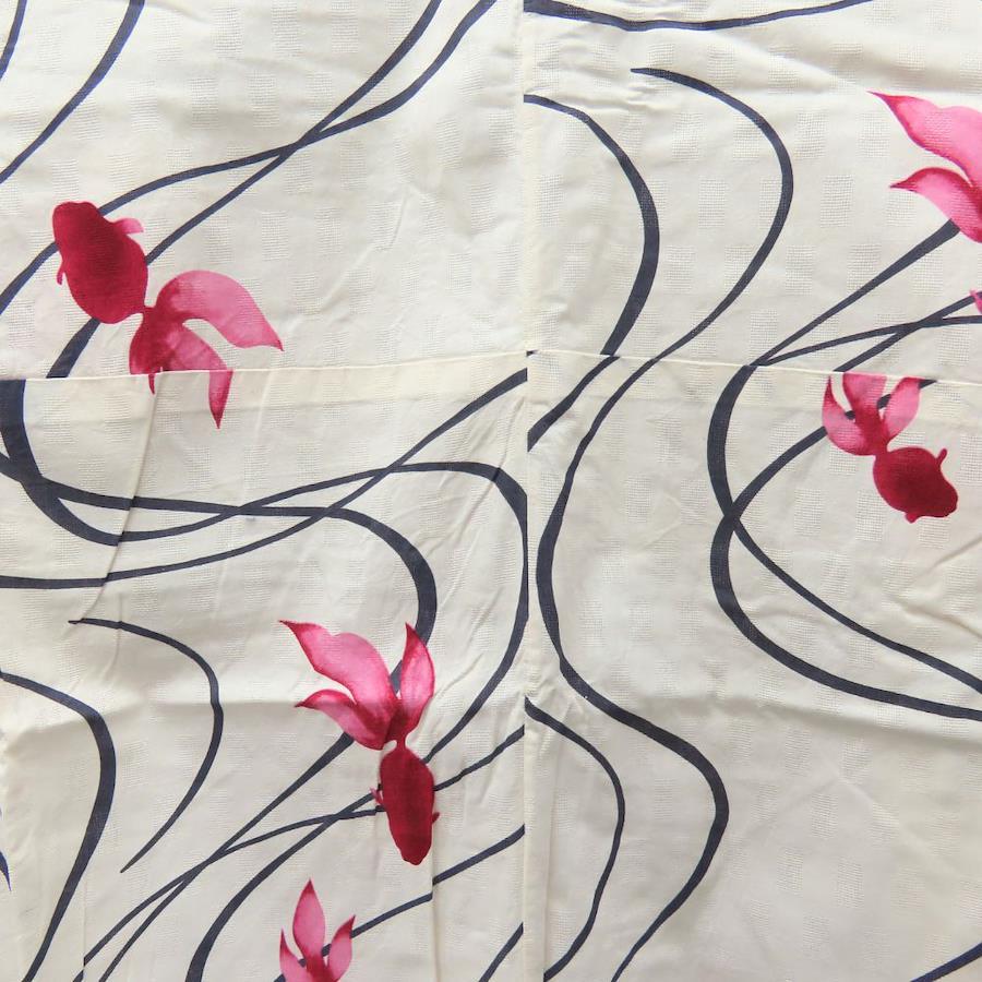 浴衣にシワ・汚れ、帯に若干の色移り・糸飛び出し・汚れ、保管に伴う多少の型崩れ・クセ