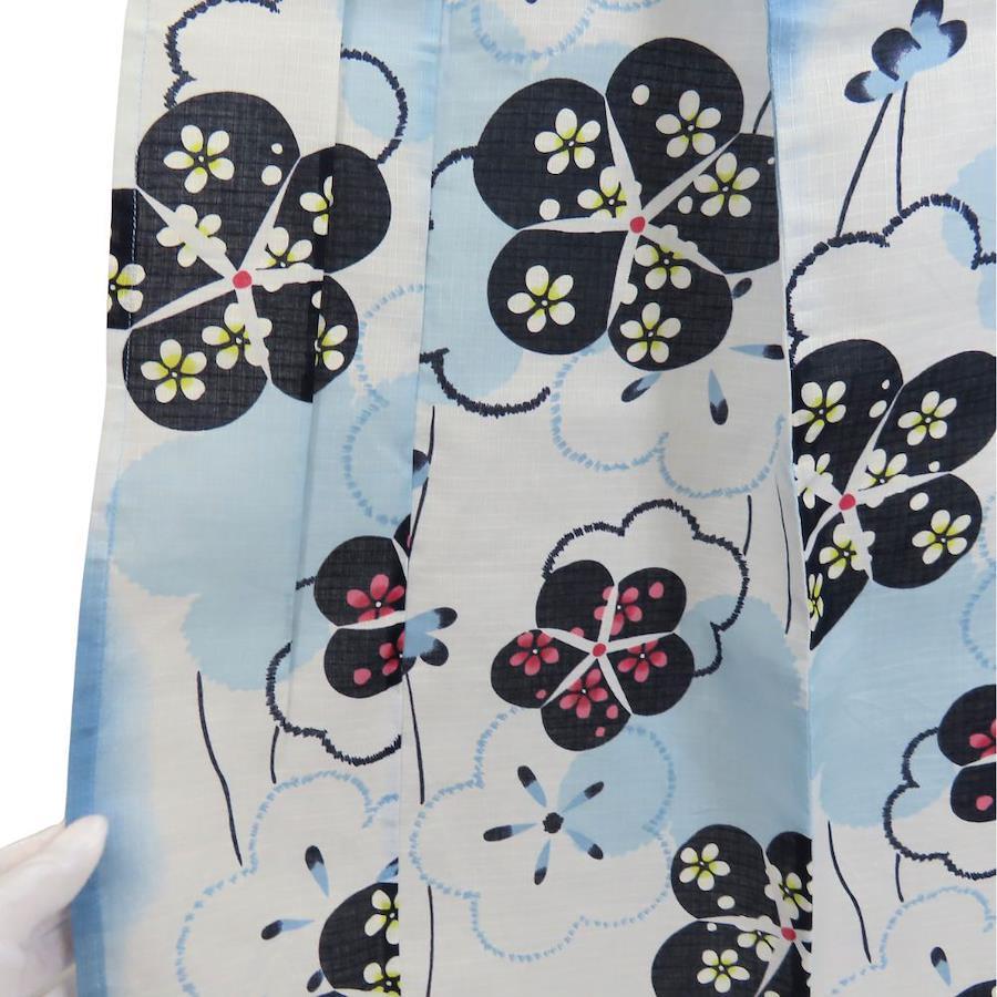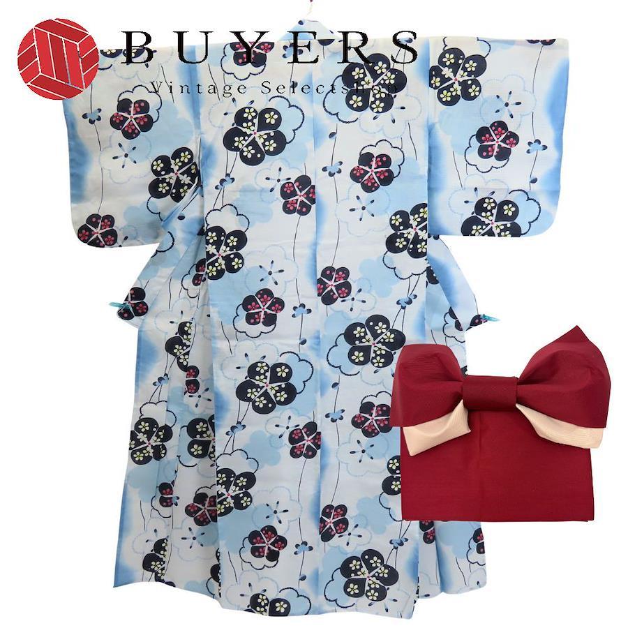 [Used] Yukata Set with Pre-Obi, Cotton, Light Blue, Wine Red, and White Fabrics, Kimono, Women's