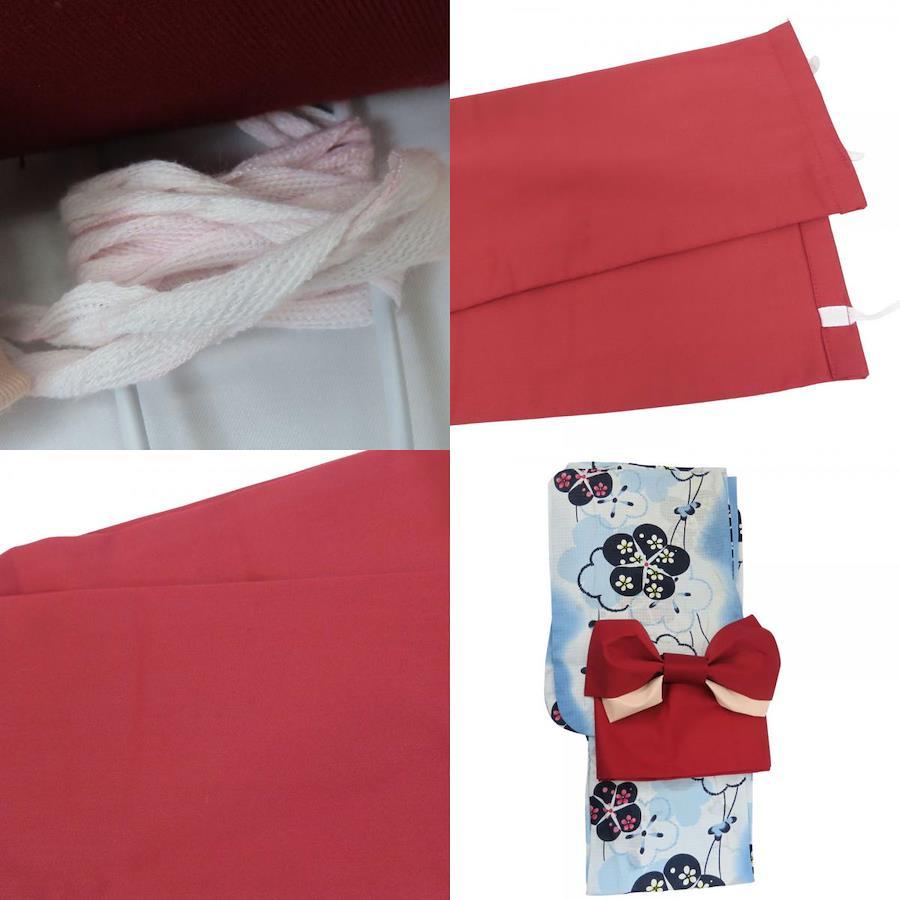品名【中古】 浴衣 セット 作り帯 綿 ライトブルー ワインレッド ホワイト 変わり生地 レディース 女性