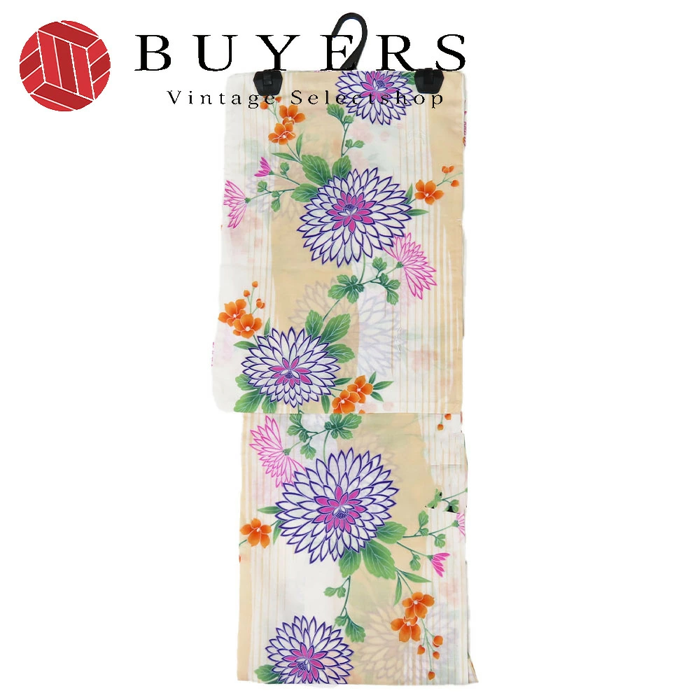 品名【中古】 浴衣 未使用展示品 綿 オレンジ 紫 マルチカラー 花 大人可愛い レディース 女性