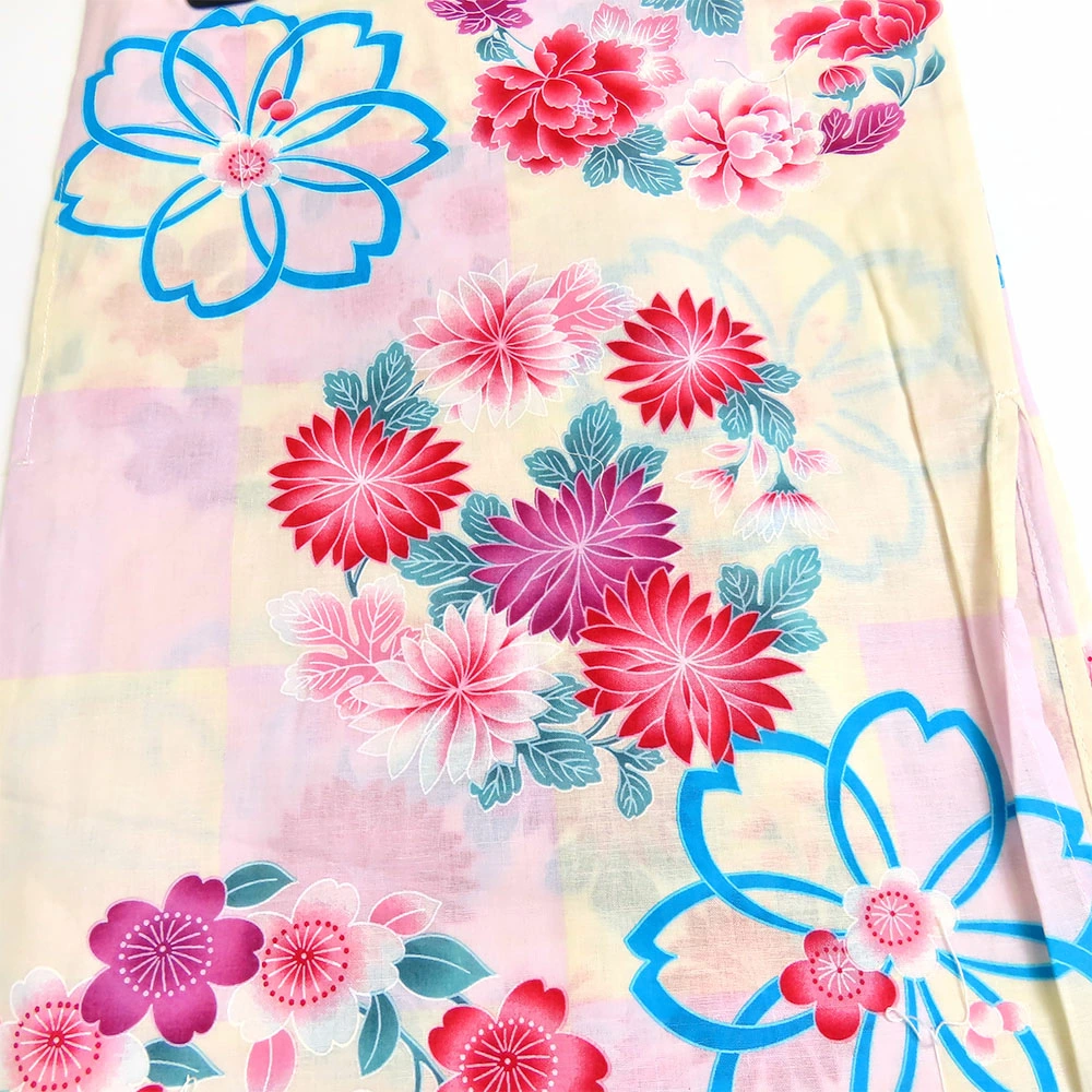 | 品名 | 【中古】 浴衣 未使用展示品 綿 ベージュ系 ピンク 赤 マルチカラー 市松柄 花柄 可愛い レディース 女性 |