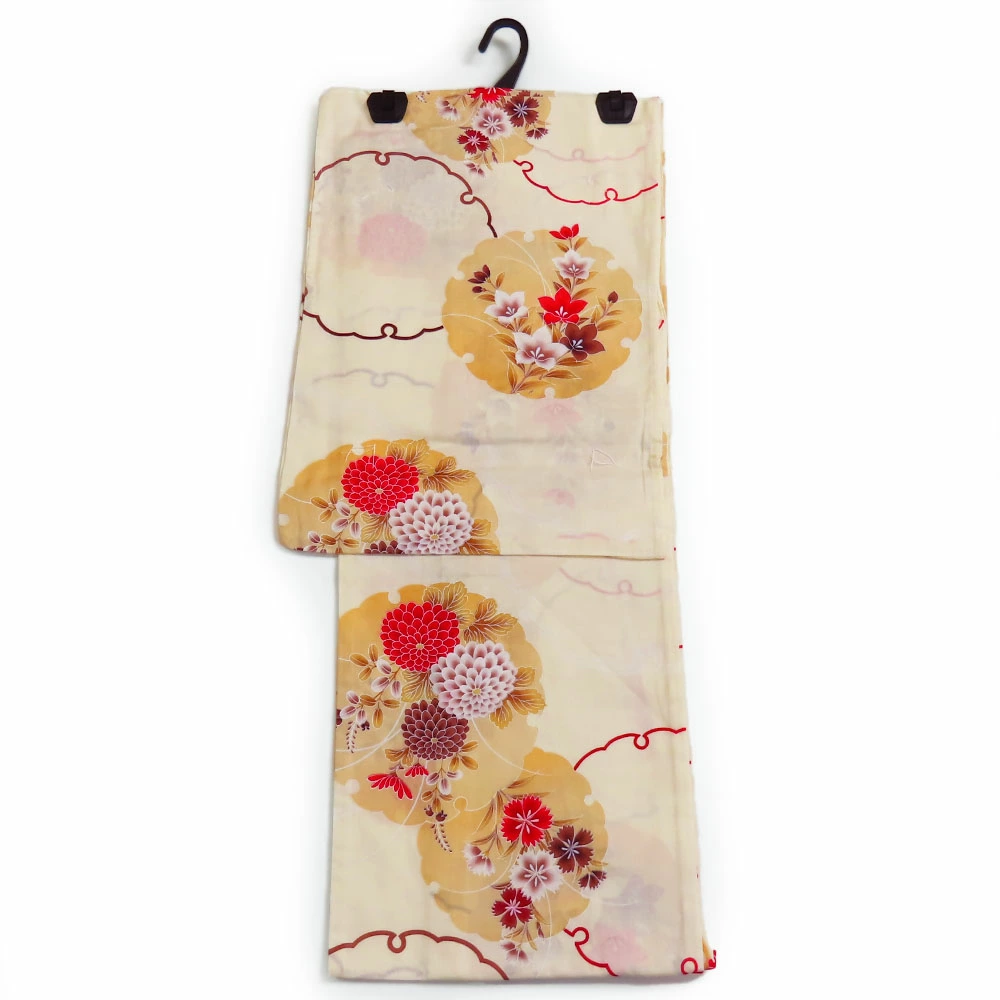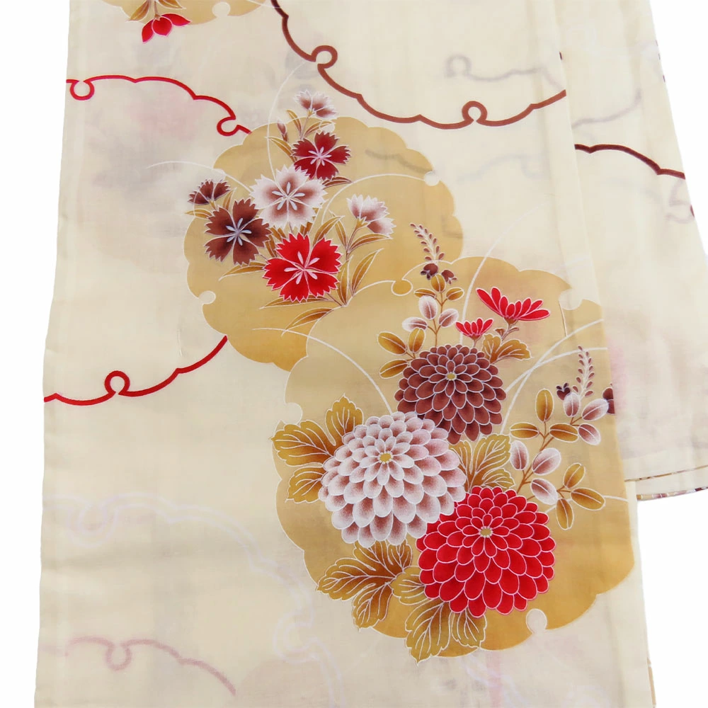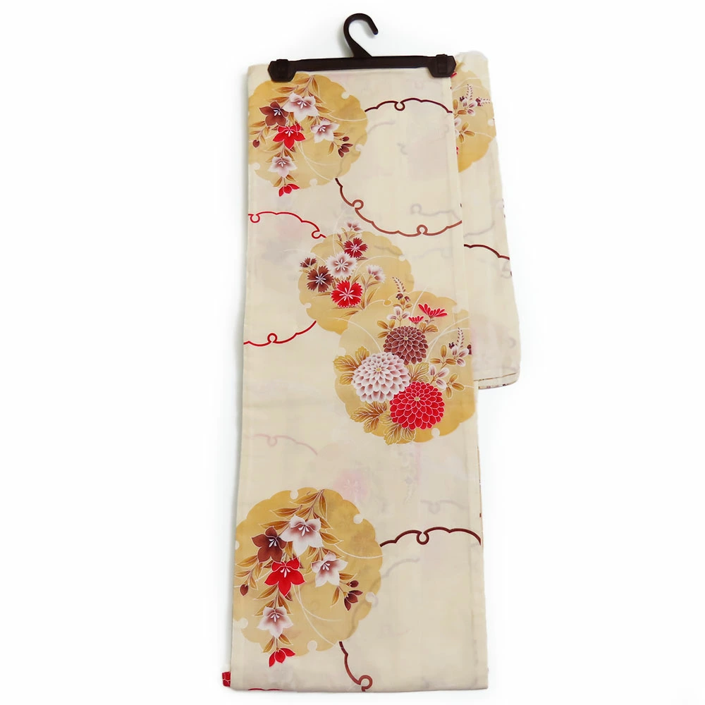 | 品名 | 【中古】 浴衣 未使用展示品 綿 ベージュ系 ブラウン 赤 雪輪 花 大人可愛い レディース 女性 |