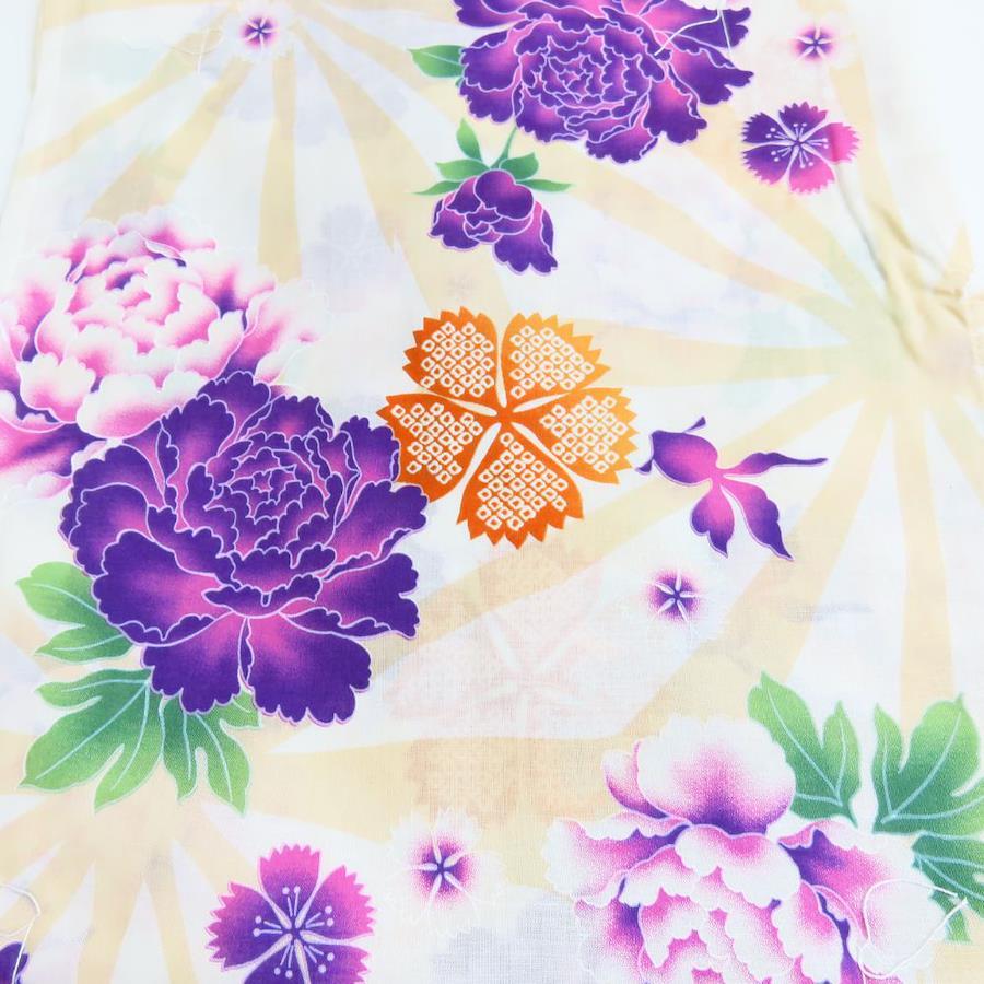 品名【中古】 浴衣 未使用展示品 綿 ベージュ系 紫 マルチカラー ぼたん 金魚 大人可愛い レディース 女性