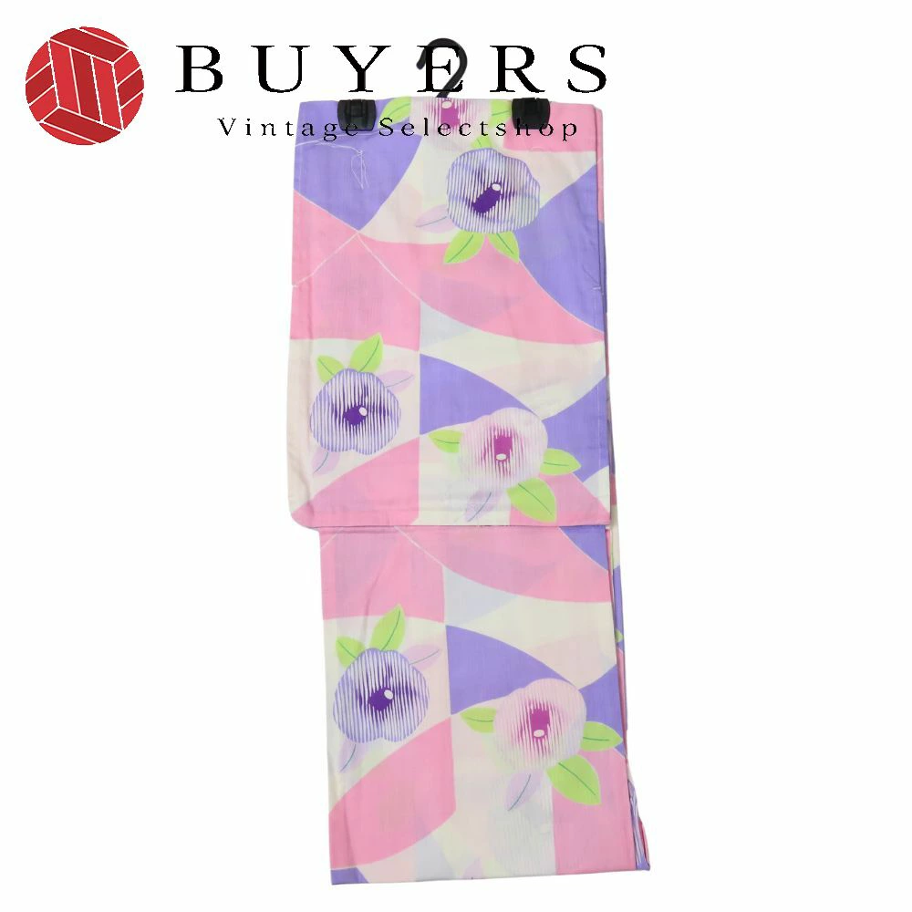 | 品名 | 【中古】 浴衣 未使用展示品 綿 白系 ピンク 藤色 椿柄 パルテルカラー 可愛い レディース 女性 |