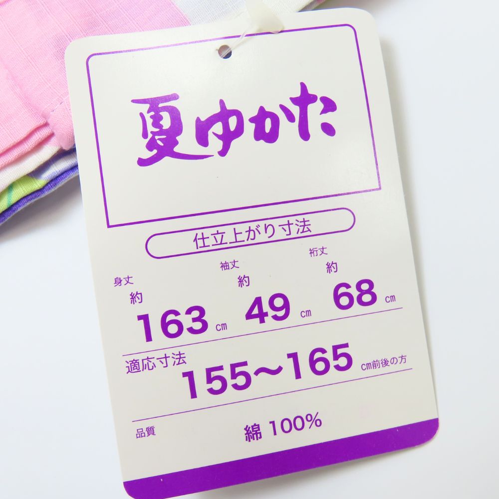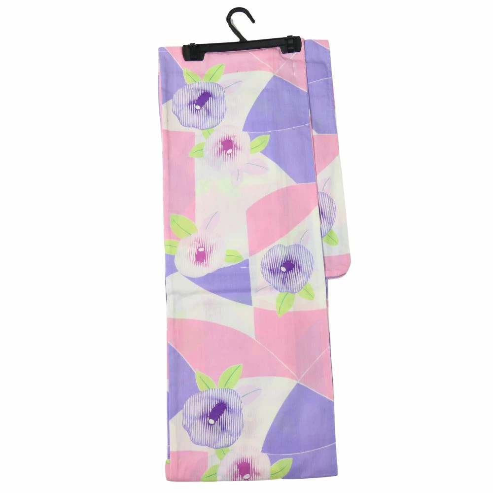 品名【中古】 浴衣 未使用展示品 綿 白 ピンク 藤色 椿柄 パステルカラー 可愛い レディース 女性
