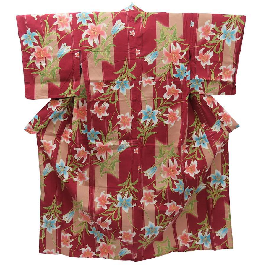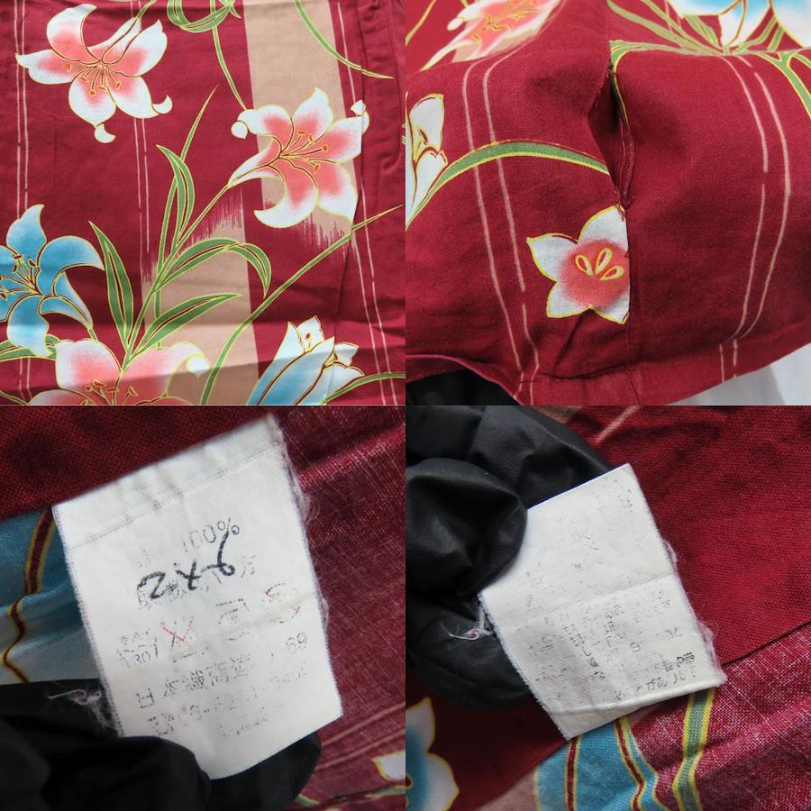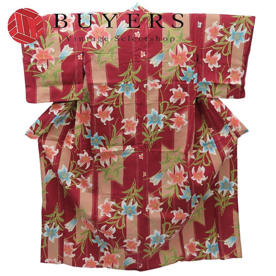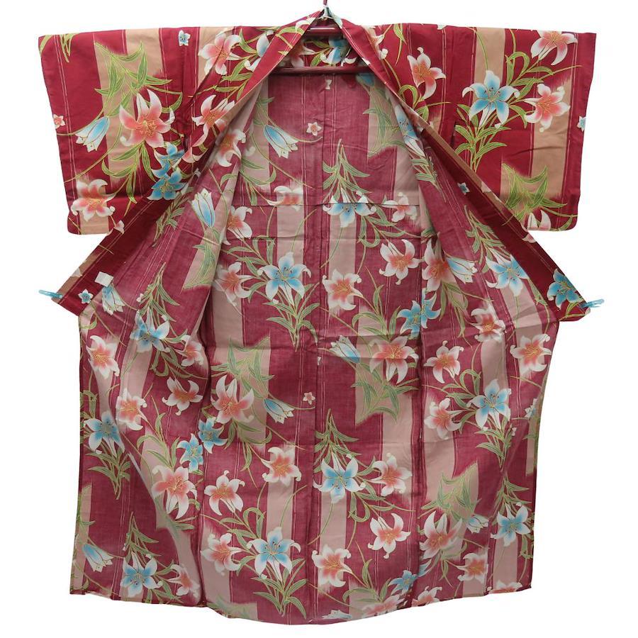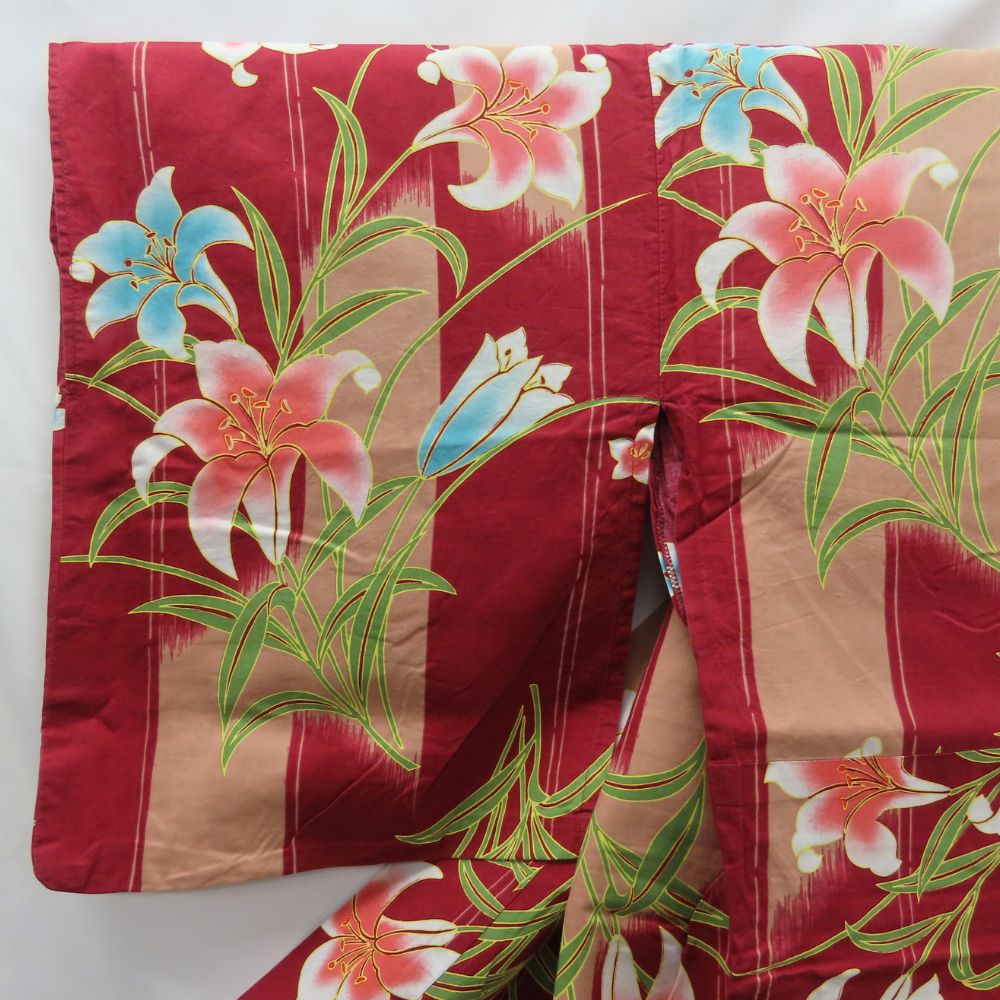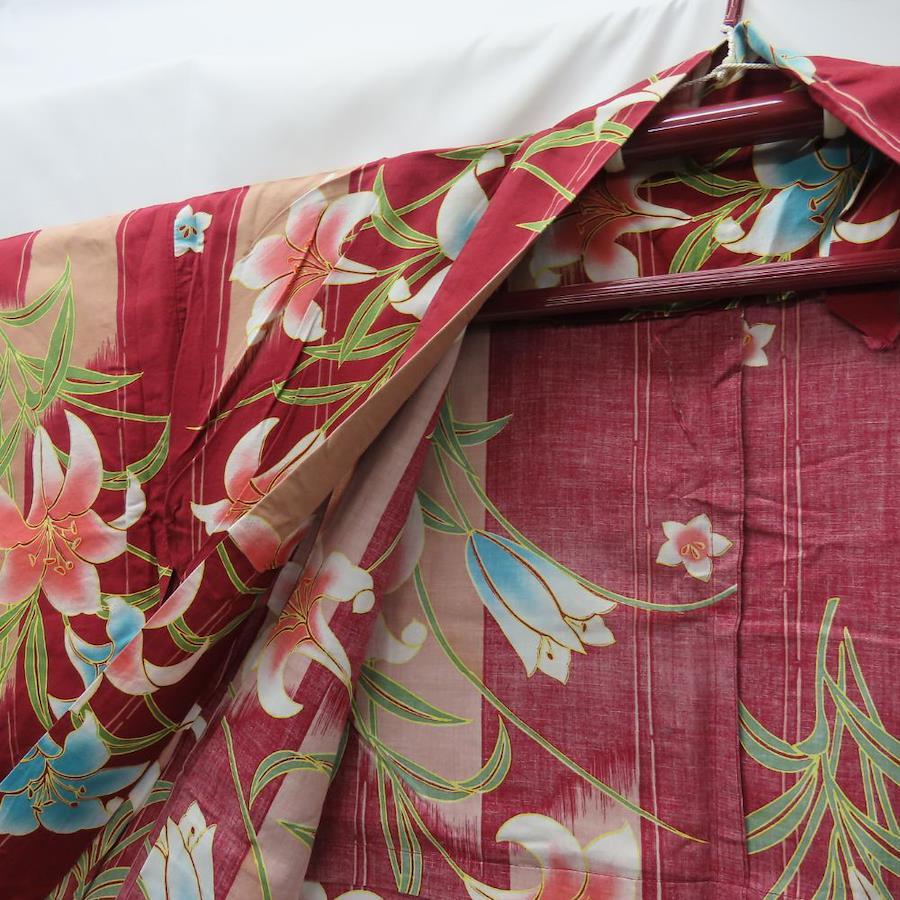 | 品名 | 【中古】 浴衣 綿 えんじ色系 マルチカラー 百合の花 モダン 大人可愛い レディース 女性 |