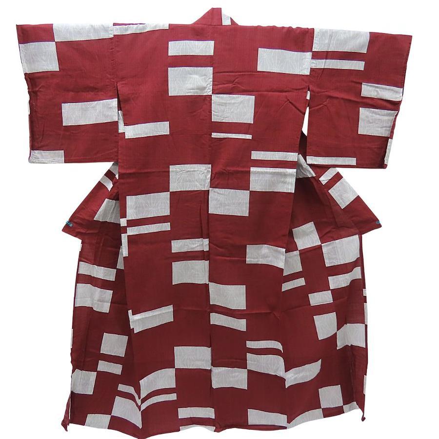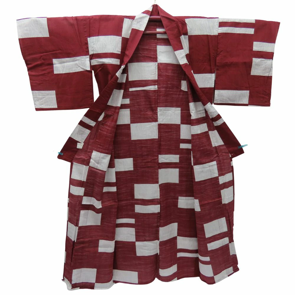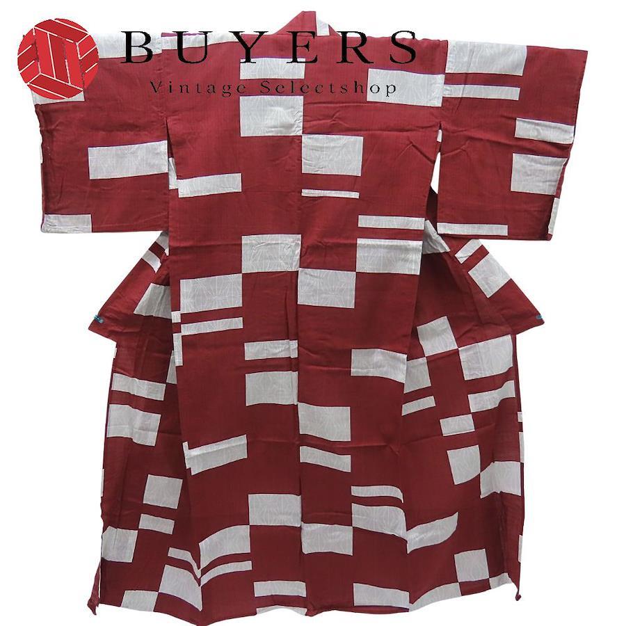 | 品名 | 【中古】 浴衣 綿 えんじ色 白 灰色 モダン 大人可愛い レディース 女性 |