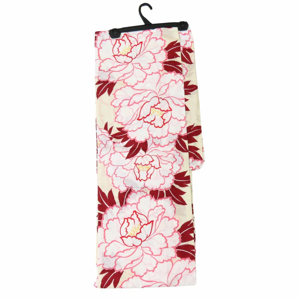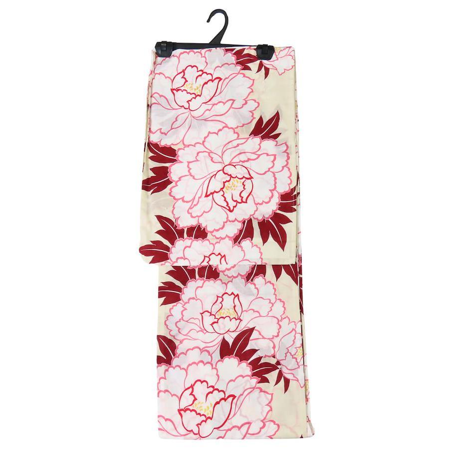| 品名 | 【中古】 浴衣 綿 クリーム系 えんじ ピンク ぼたん 大柄 大人可愛い レディース 女性 |