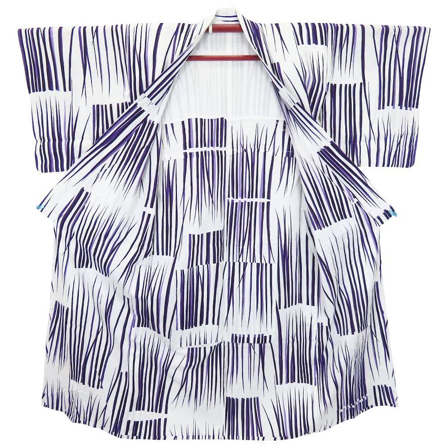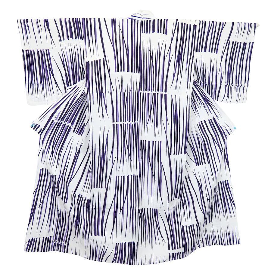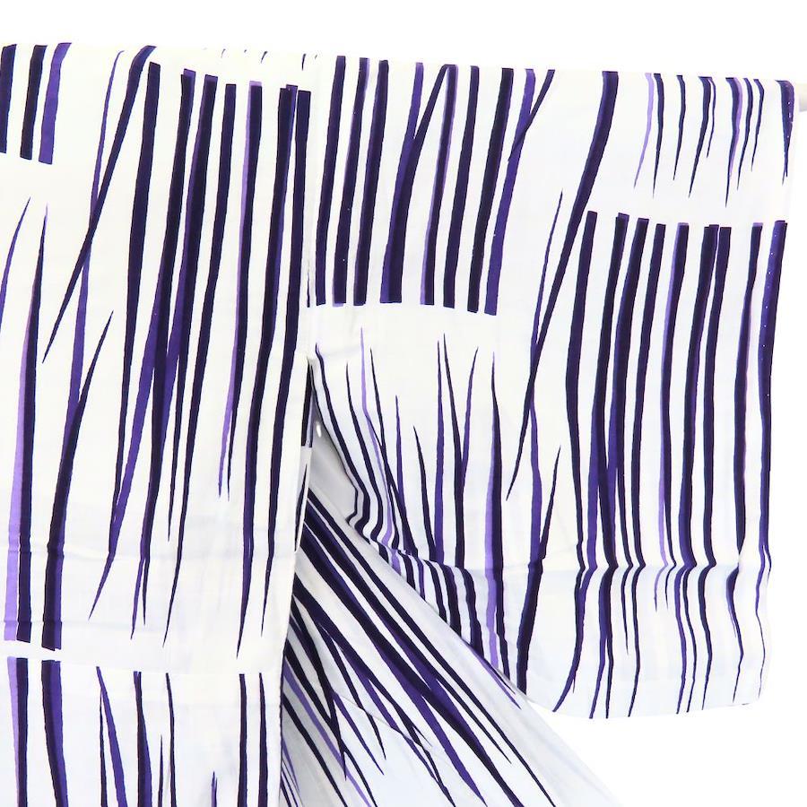 | 品名 | 【中古】 浴衣 綿 ホワイト パープル モダン お洒落 レディース 女性 |