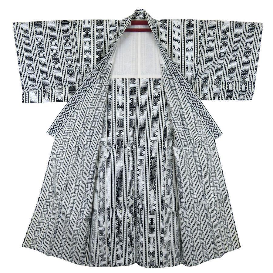 | 品名 | 【中古】 浴衣 綿 白 紺系 幾何学模様 お洒落 メンズ 男性 |