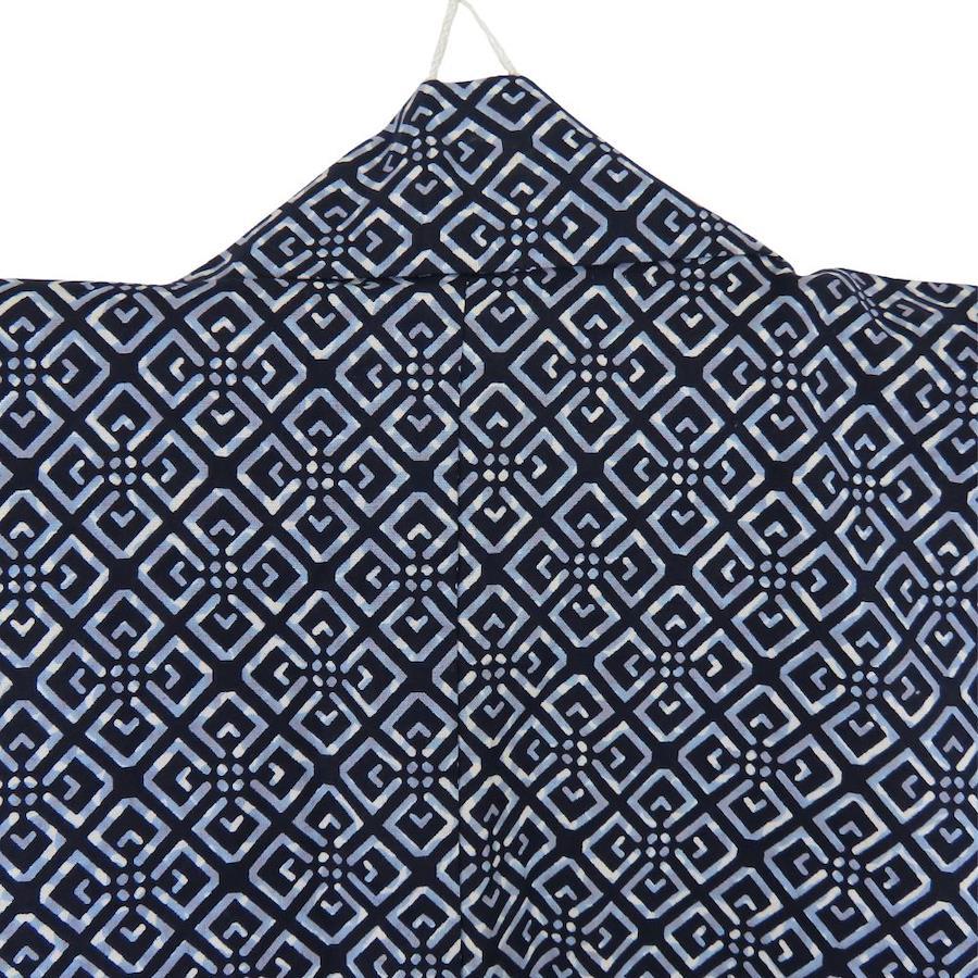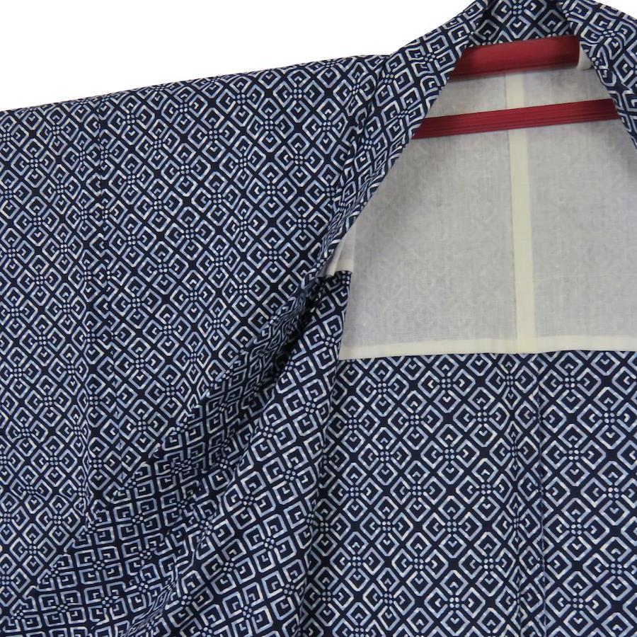 | 品名 | 【中古】 浴衣 綿 紺 ブルー系 白 幾何学模様 モダン お洒落 メンズ 男性 |