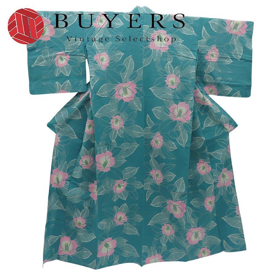 | 品名 | 【中古】 浴衣 綿 青緑系 桃色 灰色 椿柄 お洒落 大人可愛い レディース 女性 |