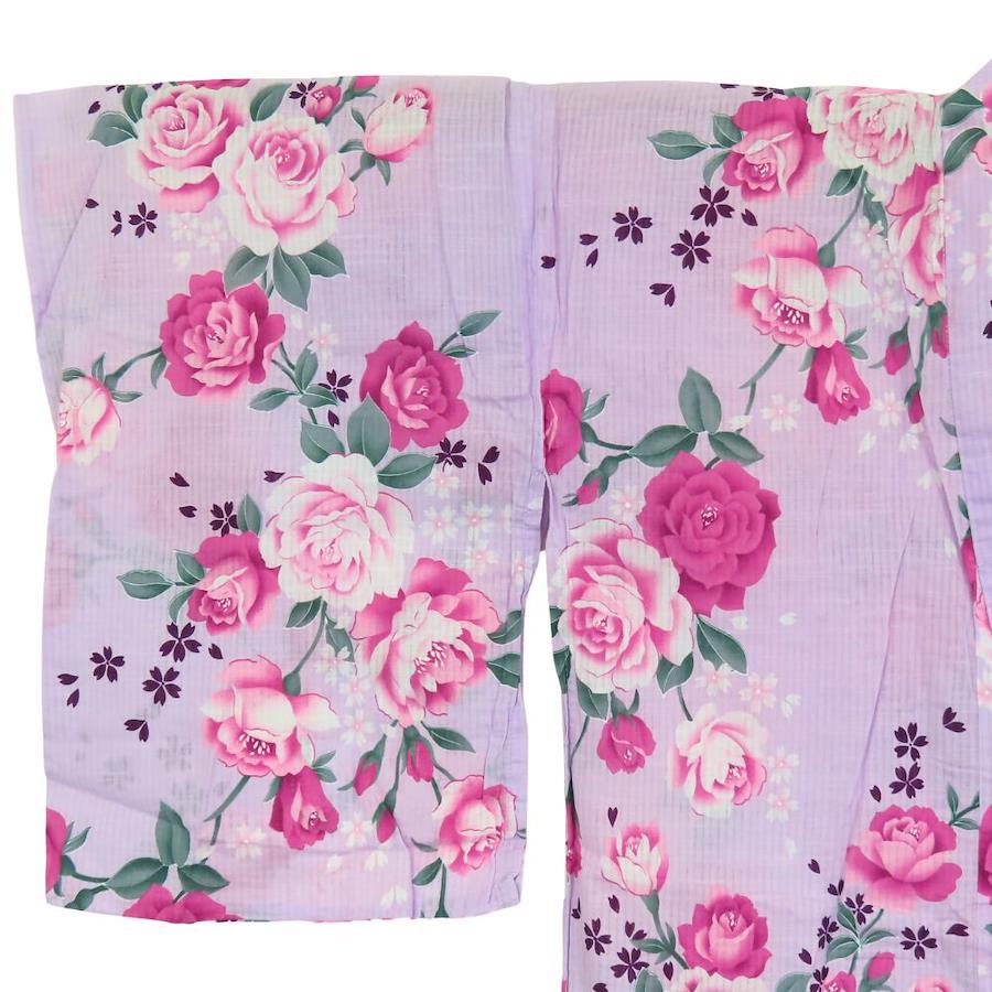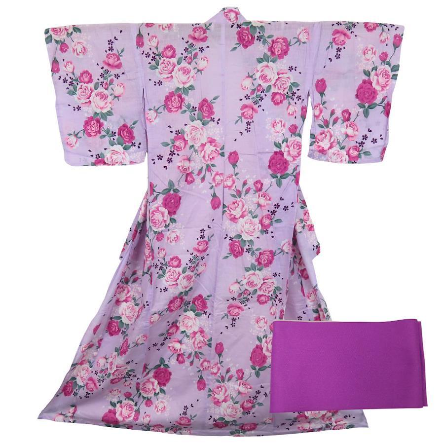 | 品名 | 【中古】 浴衣 2点セット 半幅帯 綿 ポリエステル 紫系 ピンク系 マルチカラー 薔薇 可愛い レディース 女性 |