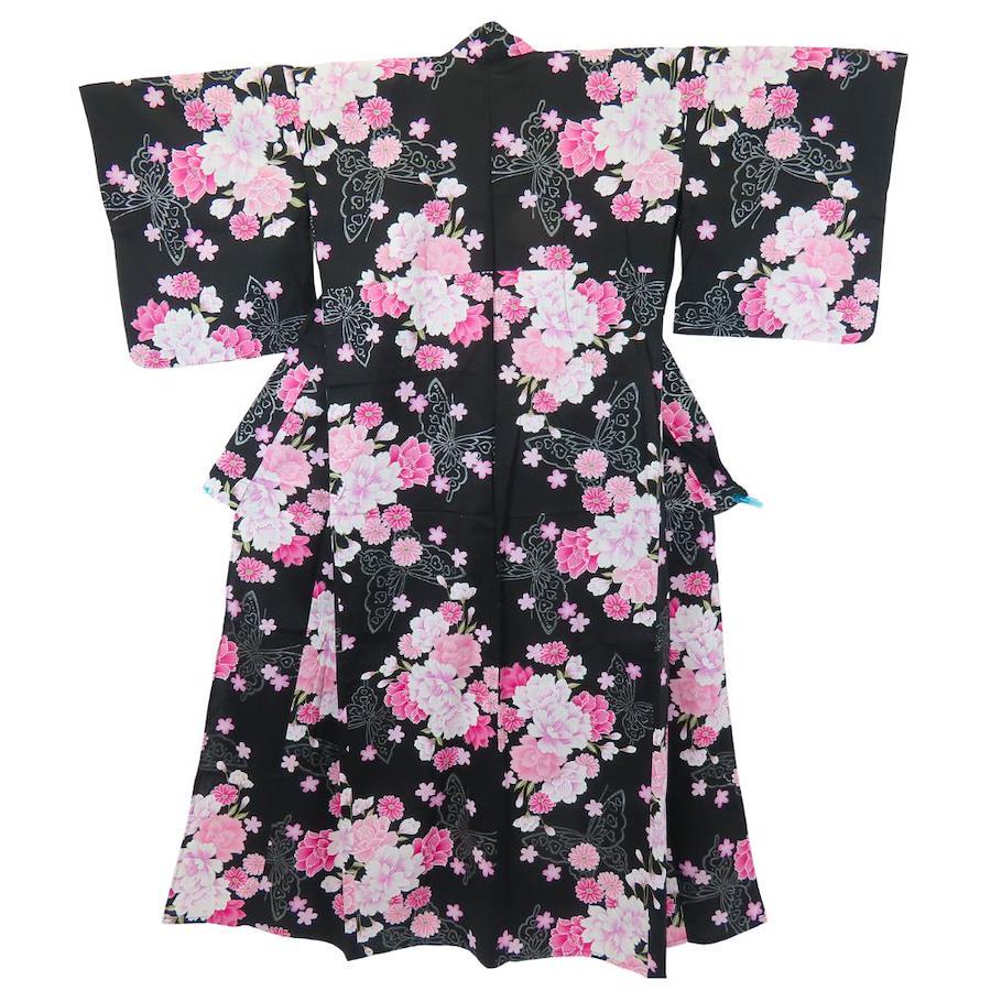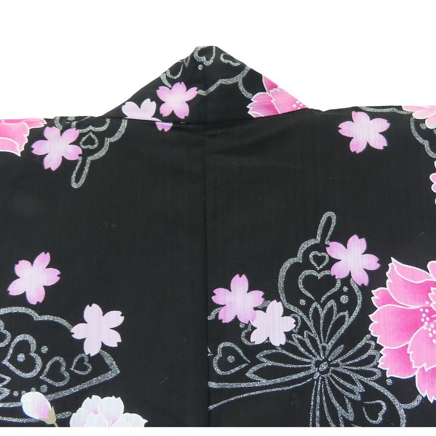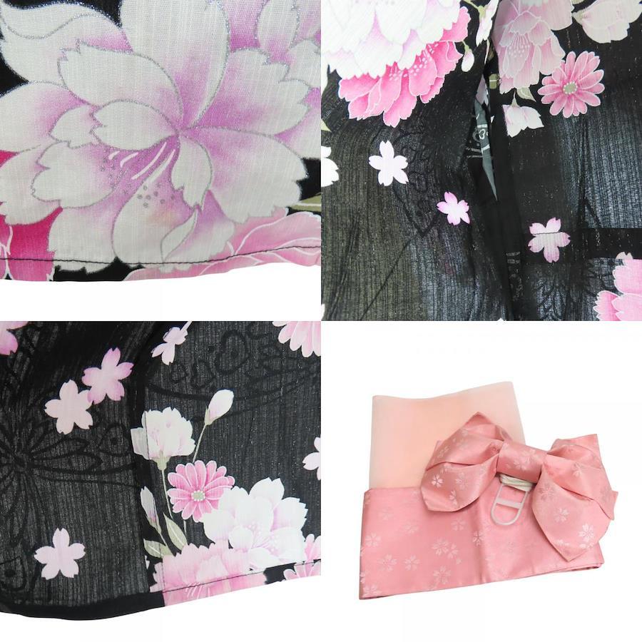 | 品名 | 【中古】 浴衣 3点セット 作り帯 兵児帯 綿 ポリエステル ブラック ピンク 変わり生地 ラメ入り リボン レディース 女性 |