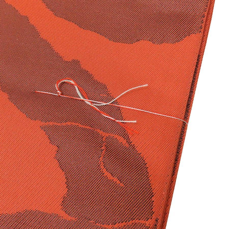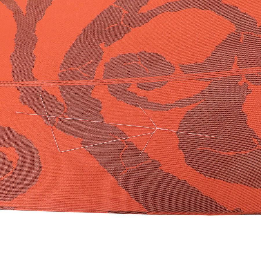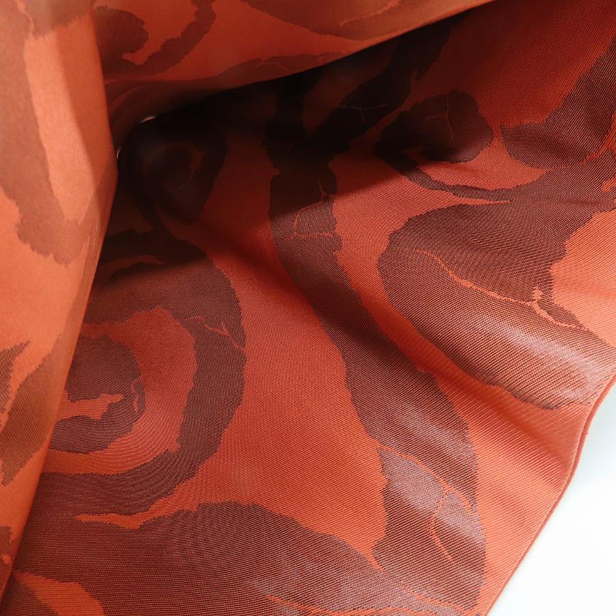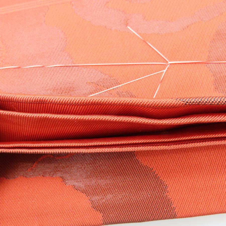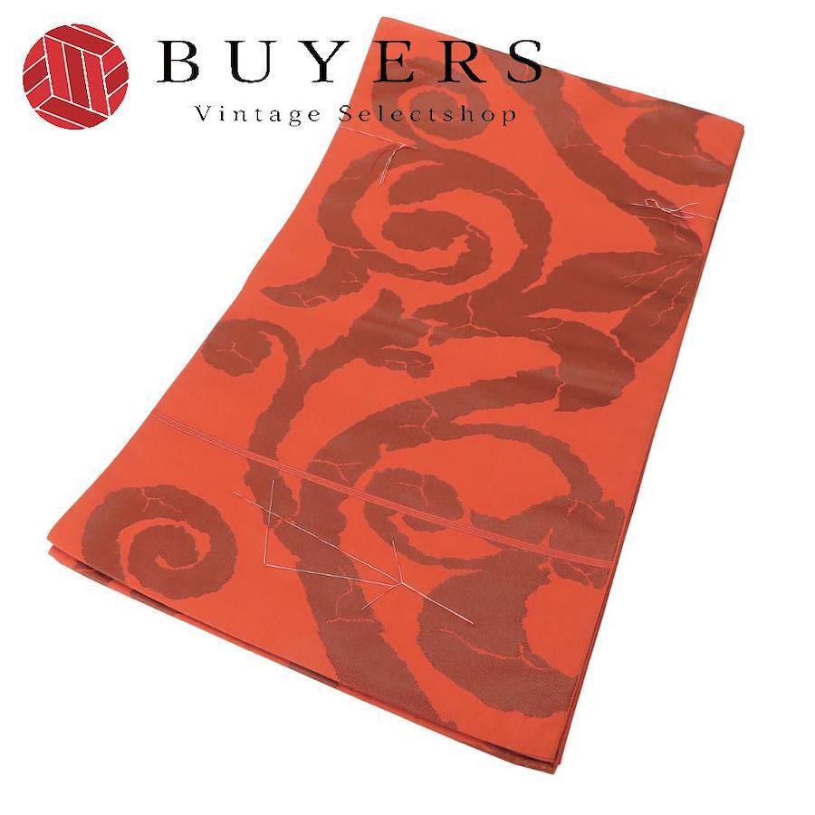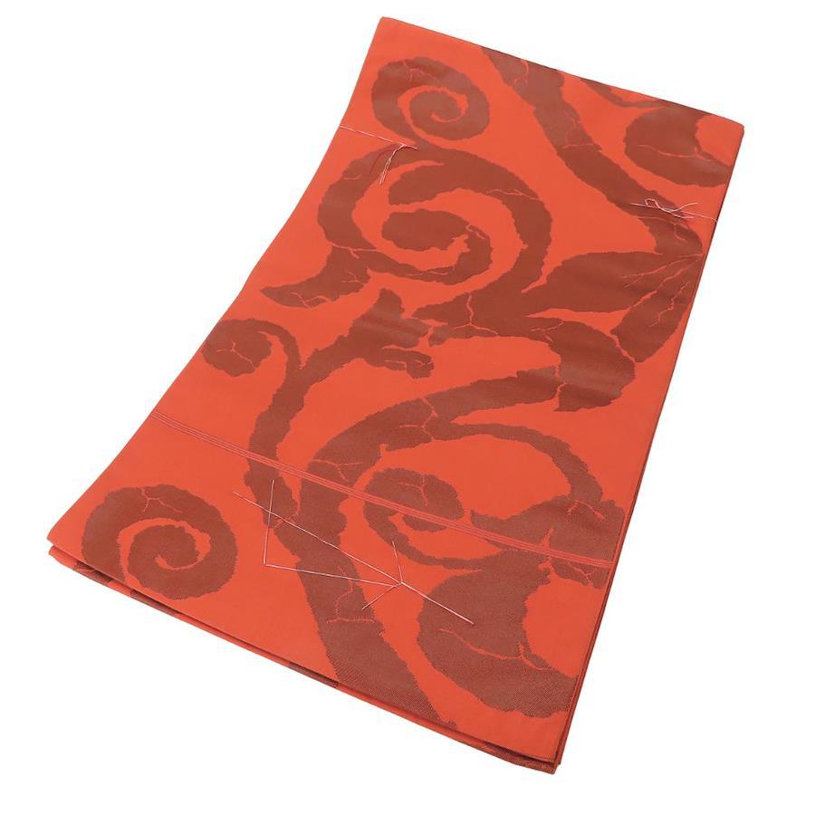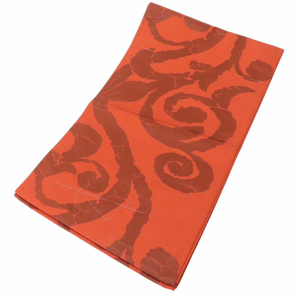 | 品名 | 【中古】 袋帯 しつけ糸あり 正絹(金銀糸除く) ブラウン系 オレンジ 唐草模様 モダン お洒落 レディース 女性 |